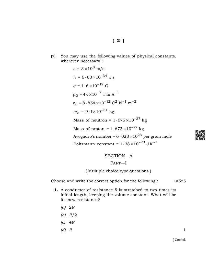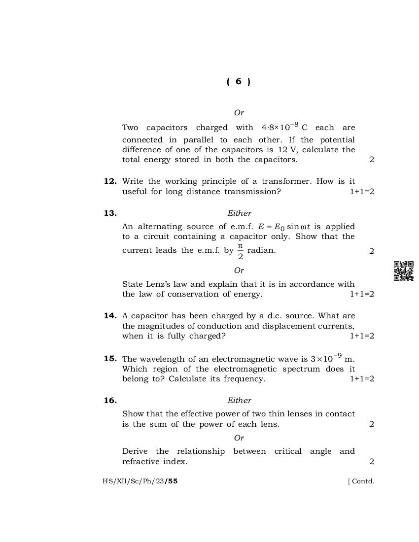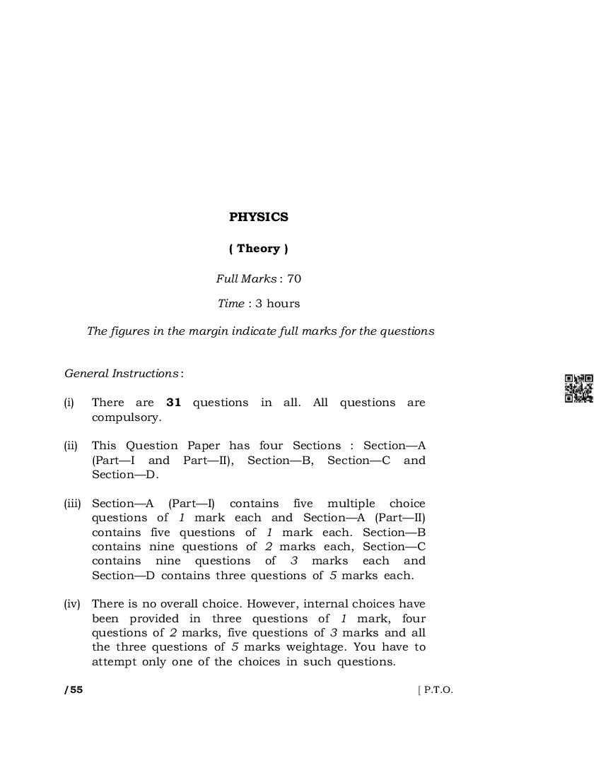 MBOSE Class 12 Sample Question Paper Physics View Download