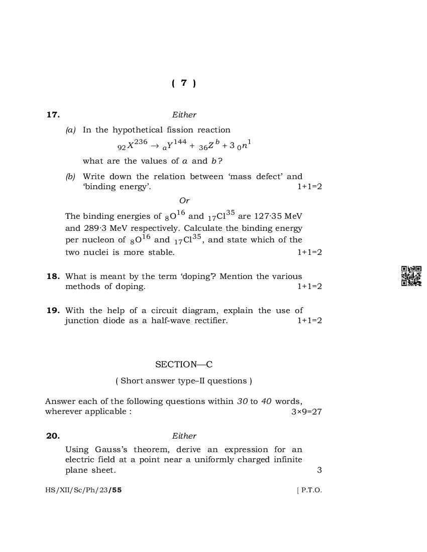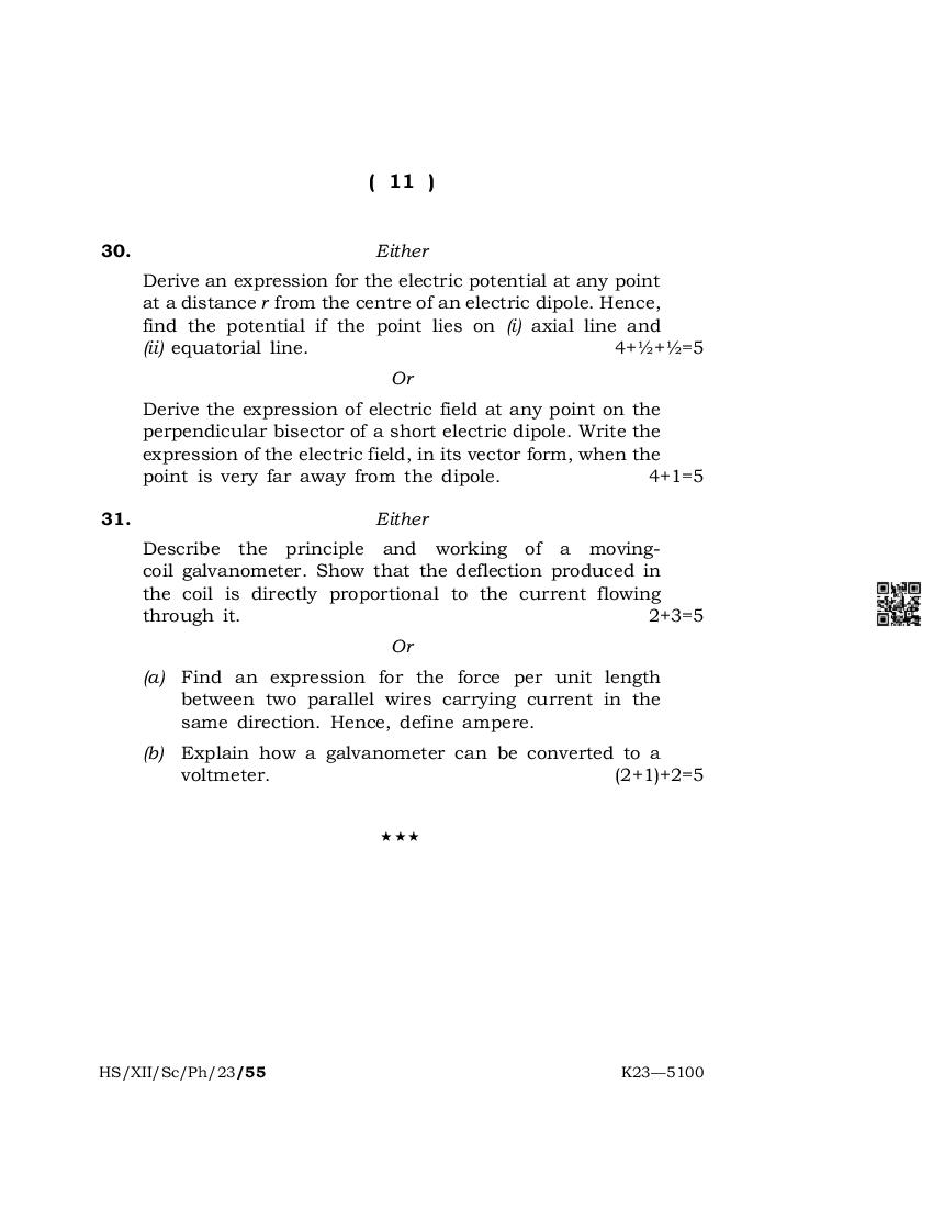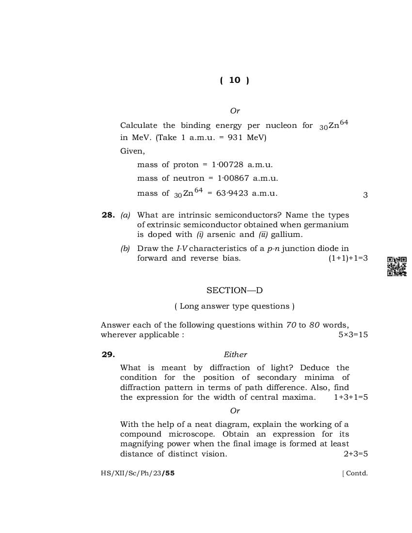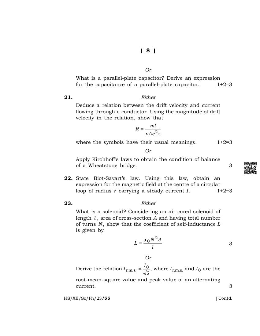 MBOSE Class 12 Sample Question Paper Physics View Download