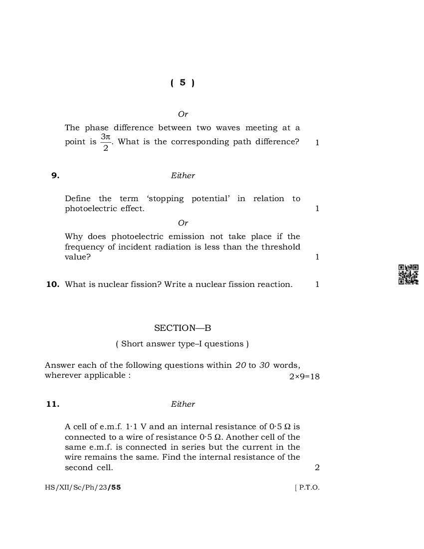 The MBOSE Sample Question Paper 2025 for HSSLC (Class 12) Physics is as follows.