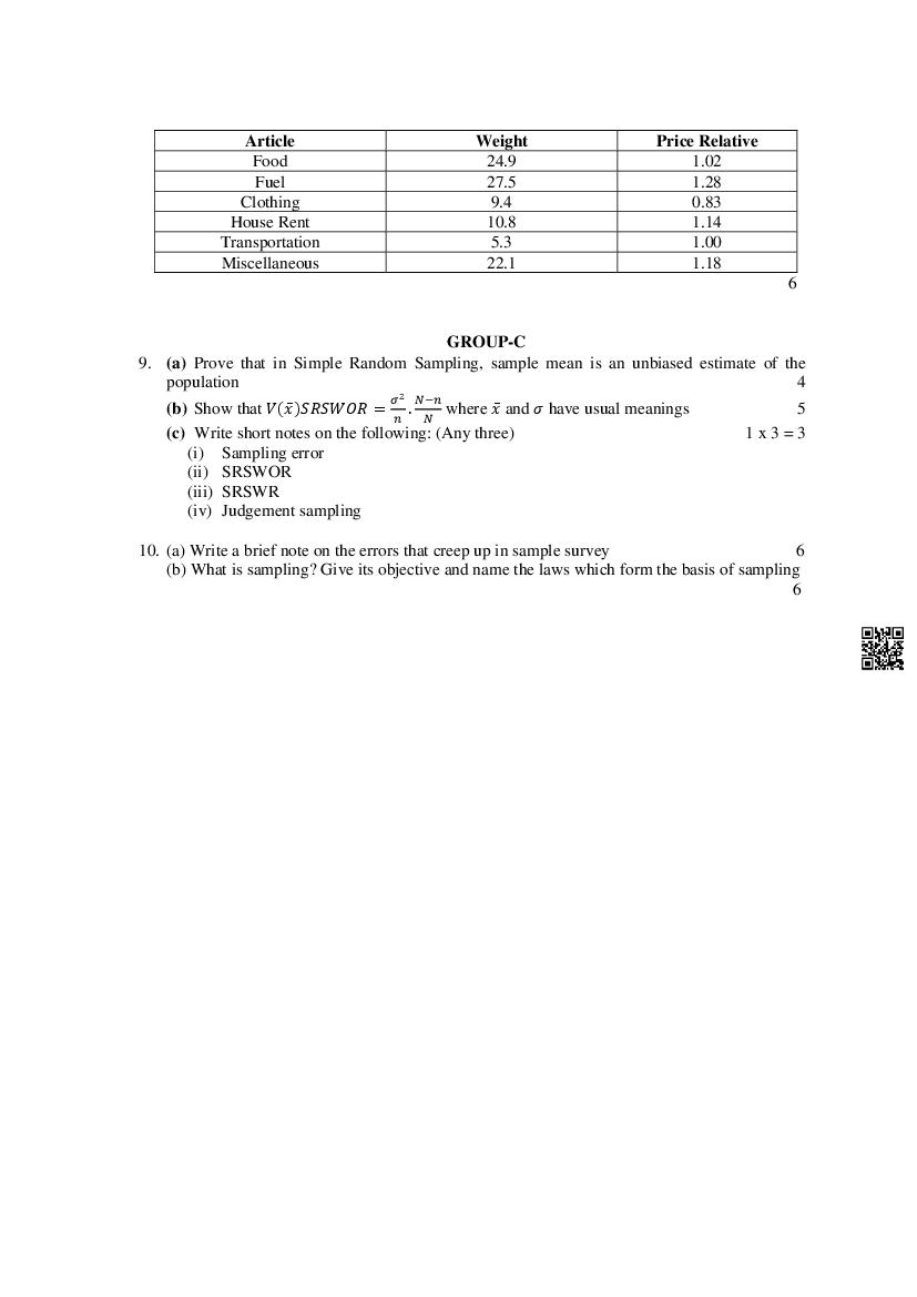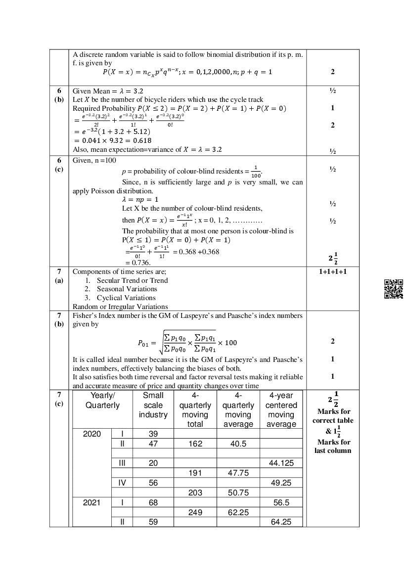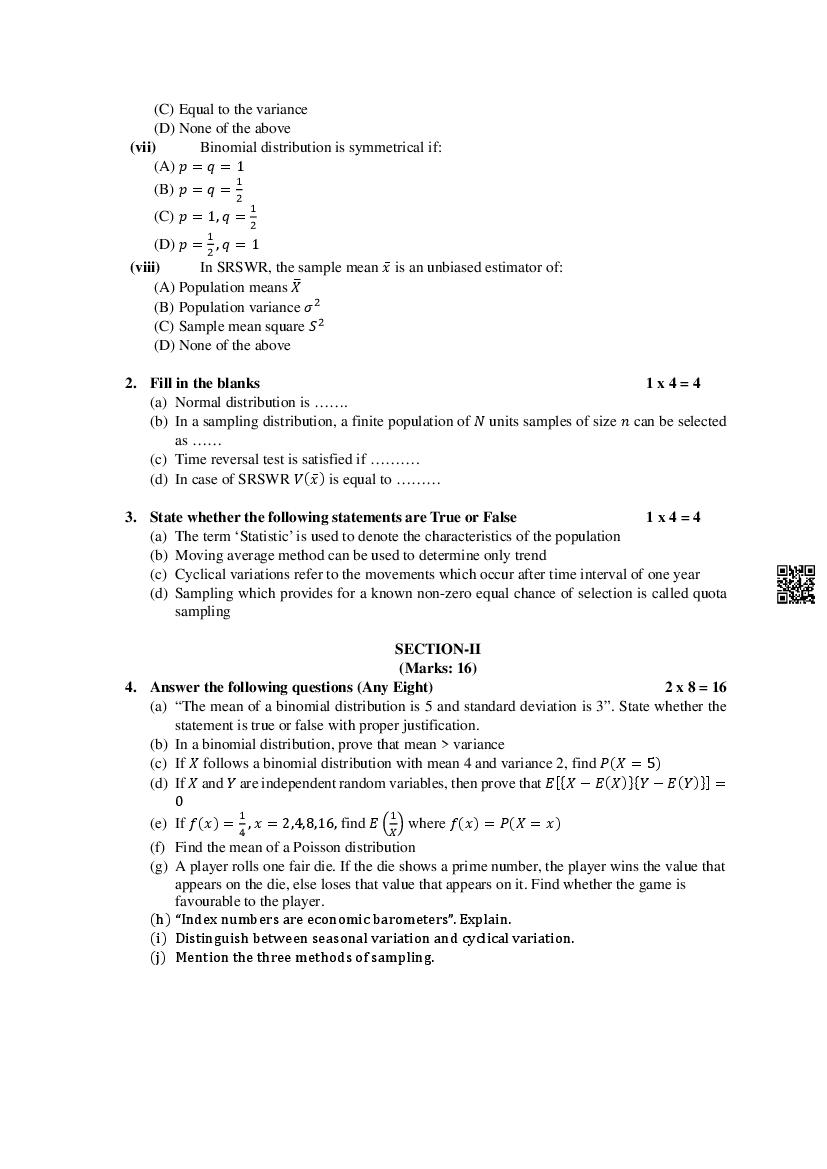 The MBOSE Sample Question Paper 2026 for HSSLC (Class 12) Statistics is as follows.