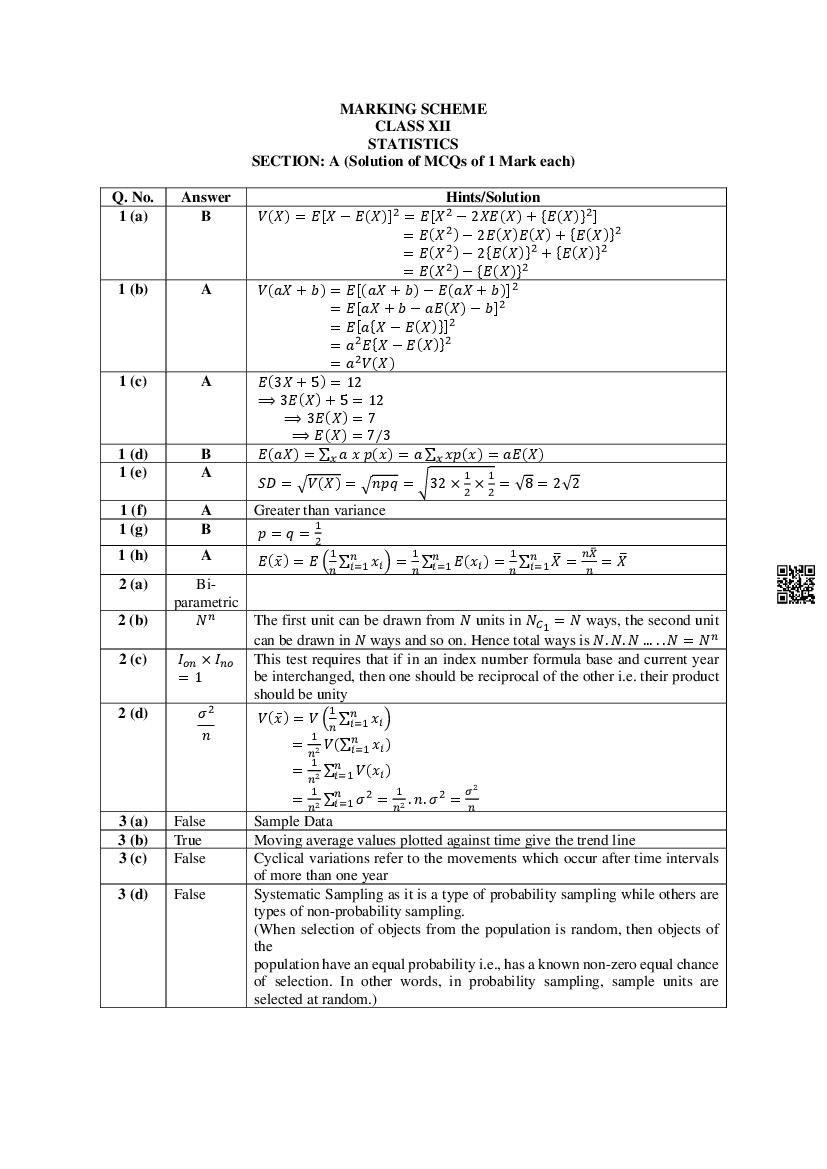 MBOSE Class 12 Sample Question Paper 2026 Statistics View Download