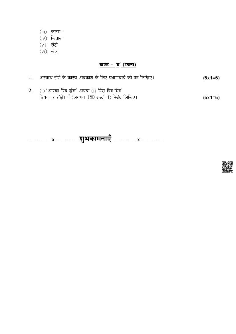 MBOSE Class 6 Sample Question Paper 2026 Hindi View Download