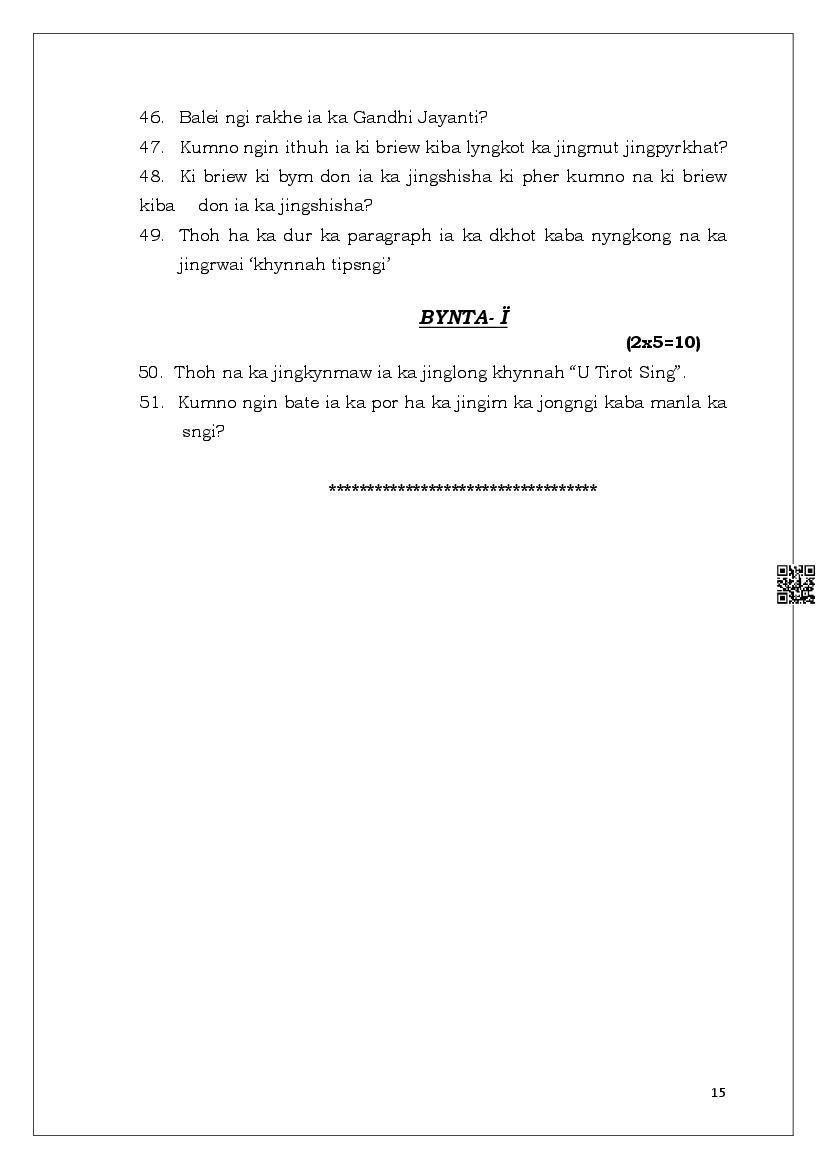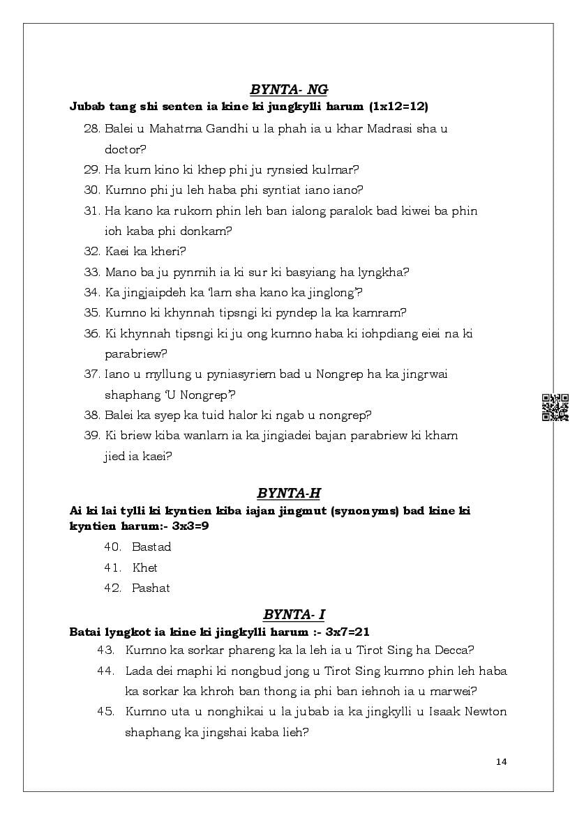 - MBOSE Class 6 Khasi Question Papers – Upon completing the Khasi curriculum, practice with the Meghalaya Board Class 6 previous year question papers to understand what to expect in the exam.