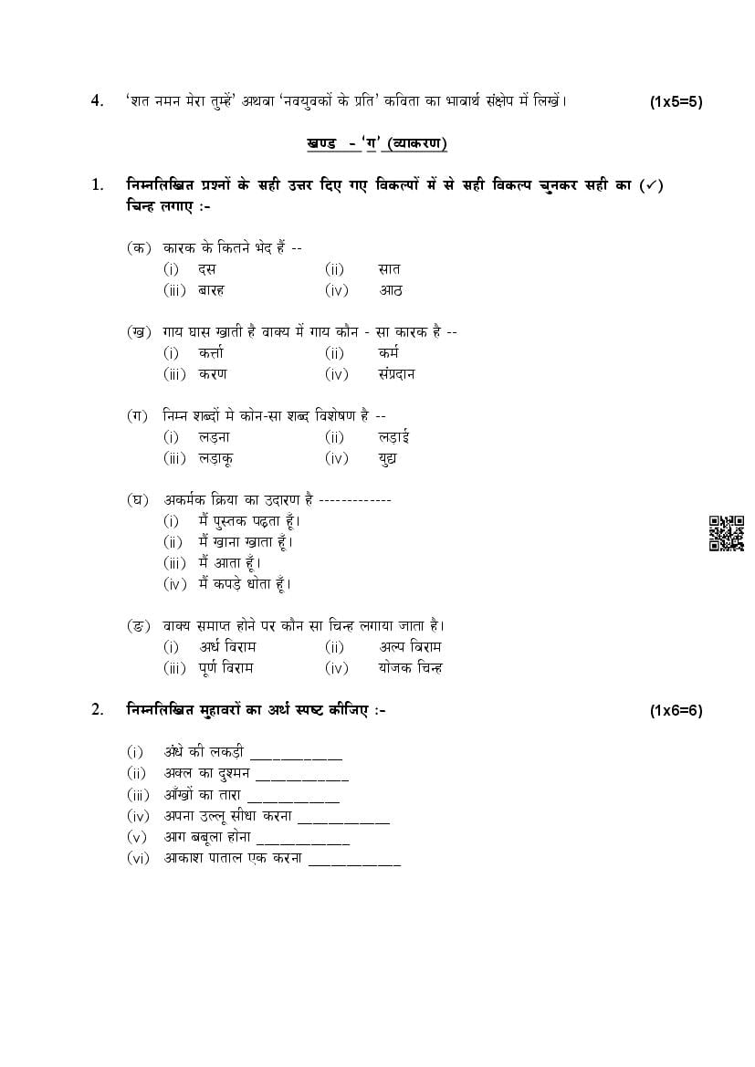 MBOSE Class VII Hindi Sample Question Paper 2026