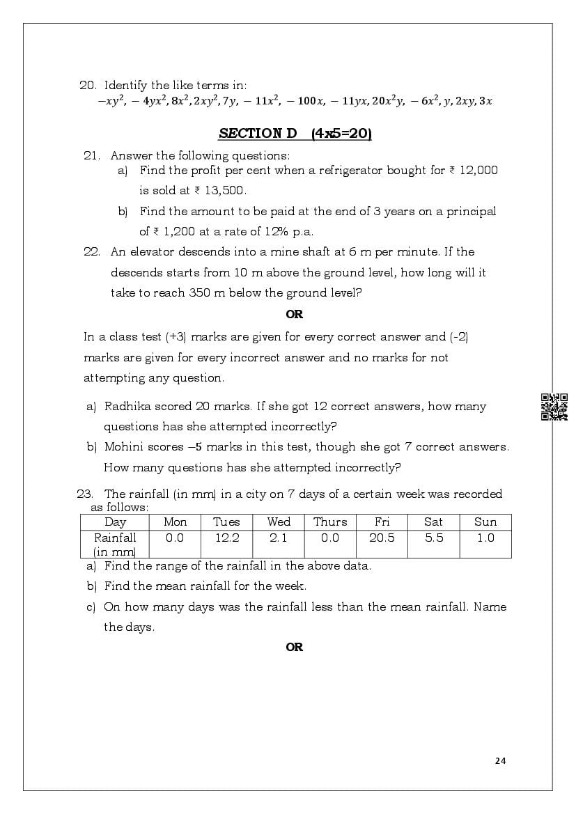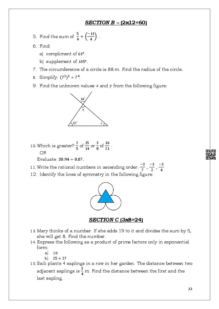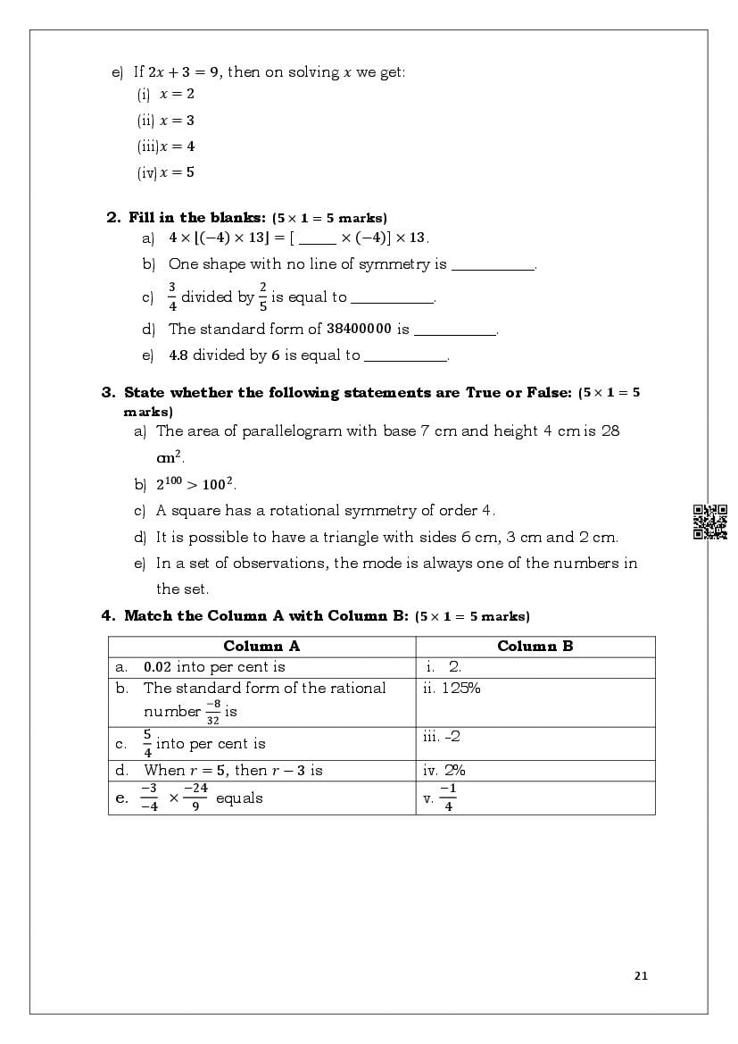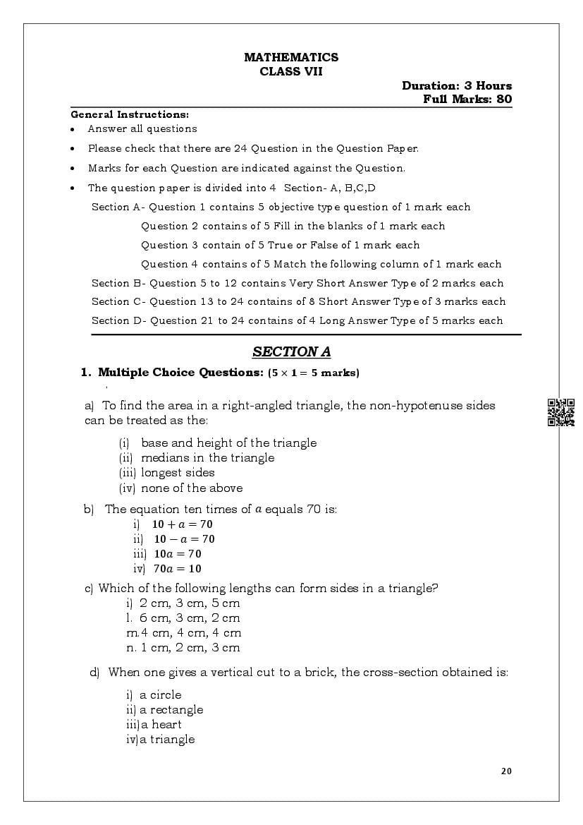 | More Model Papers for This Class | Meghalaya Board Sample Question Paper of Class 7 |