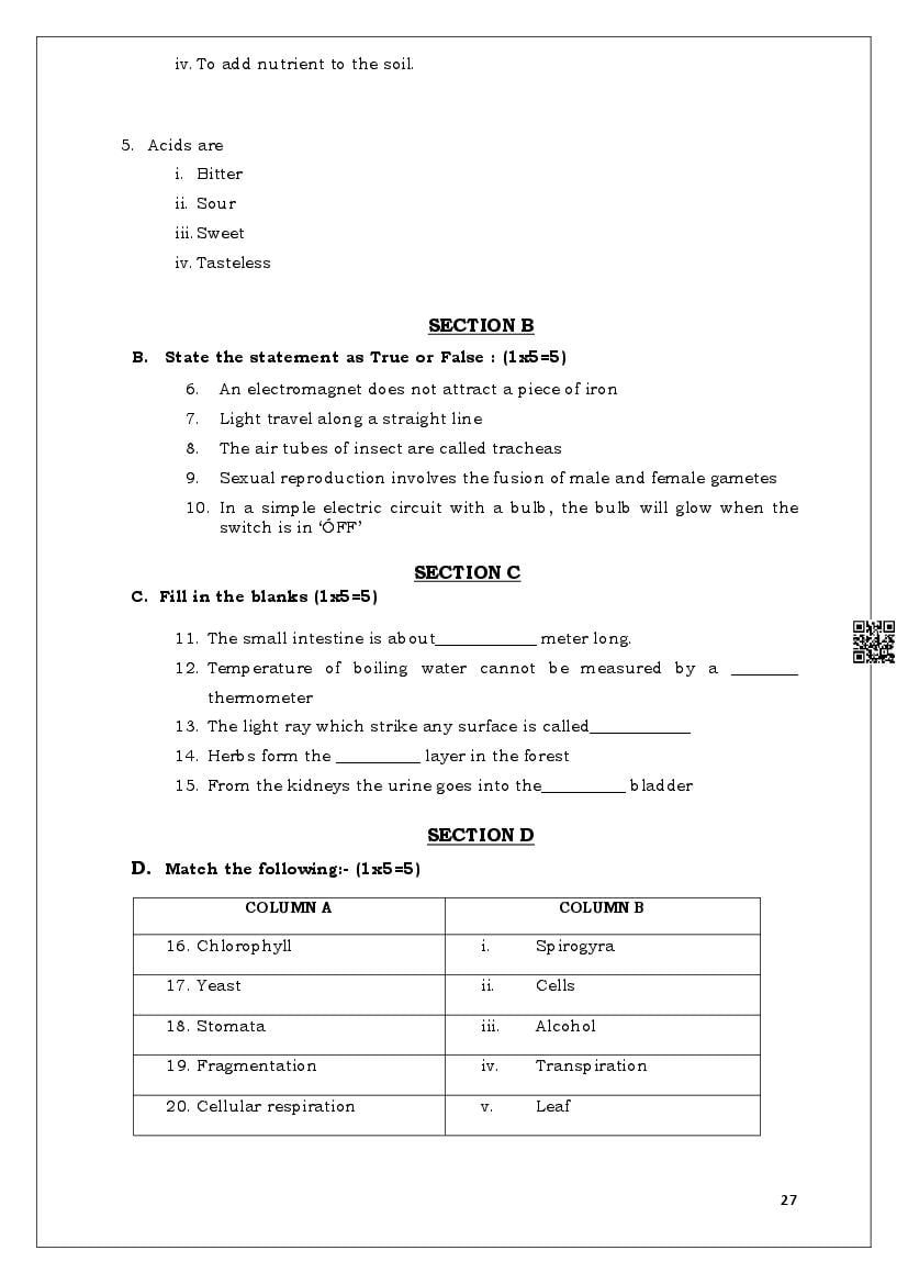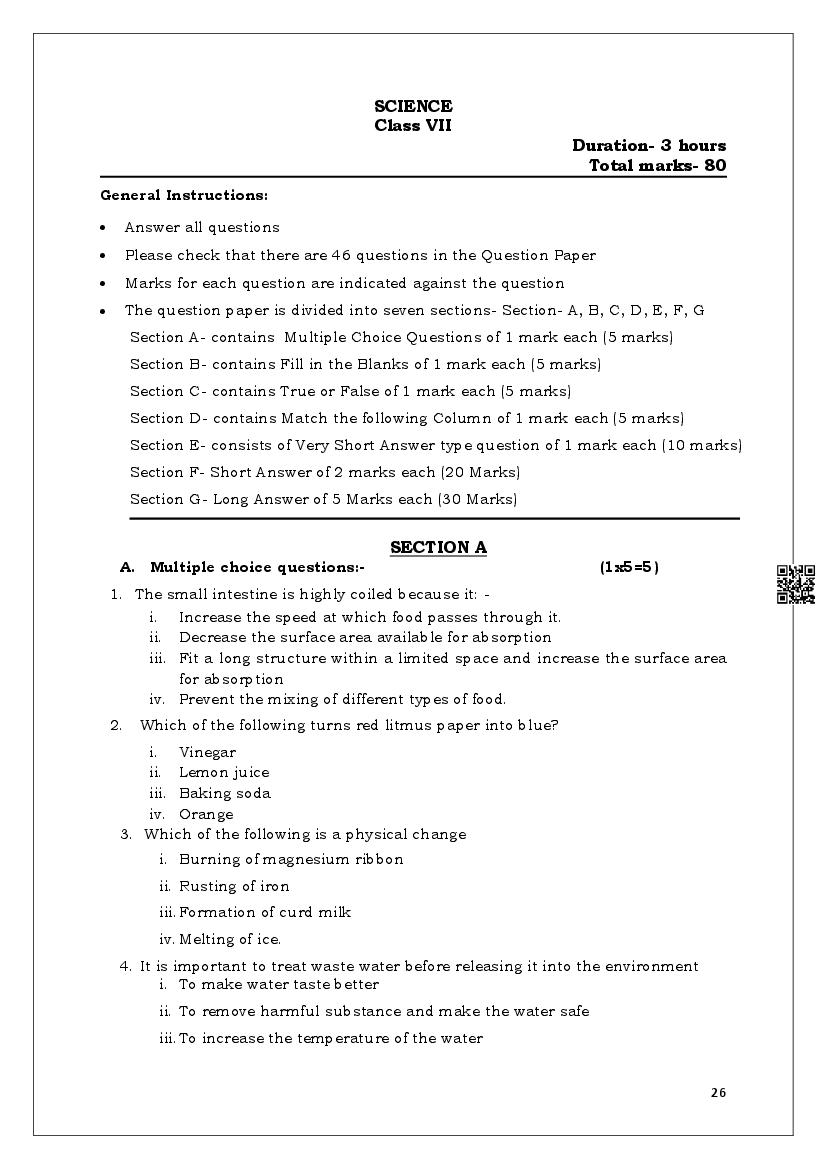 | More Model Papers for This Class | Meghalaya Board Sample Question Paper of Class 7 |