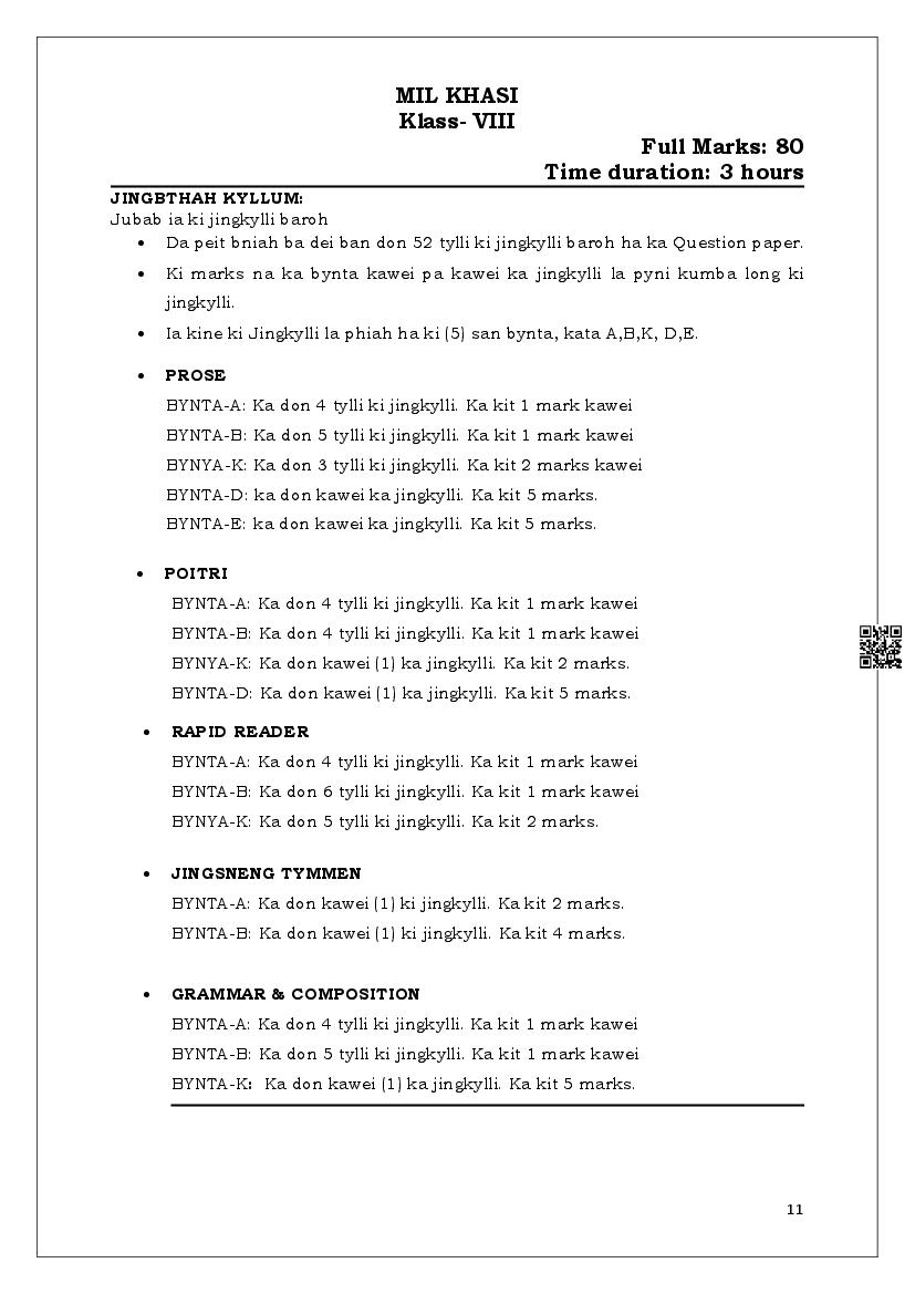 - MBOSE Class VIII Khasi Syllabus – Refer to the Meghalaya Board Class 8 Syllabus for Khasi as prescribed by the Meghalaya Board of School Education.