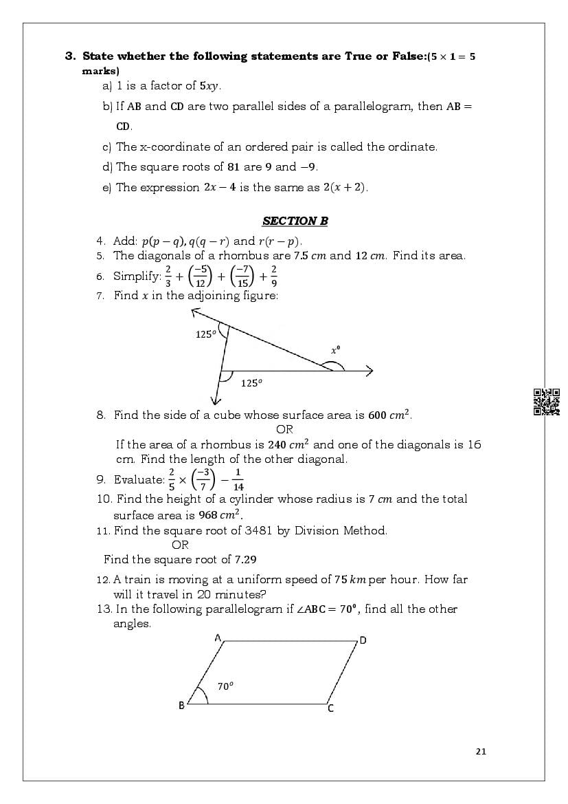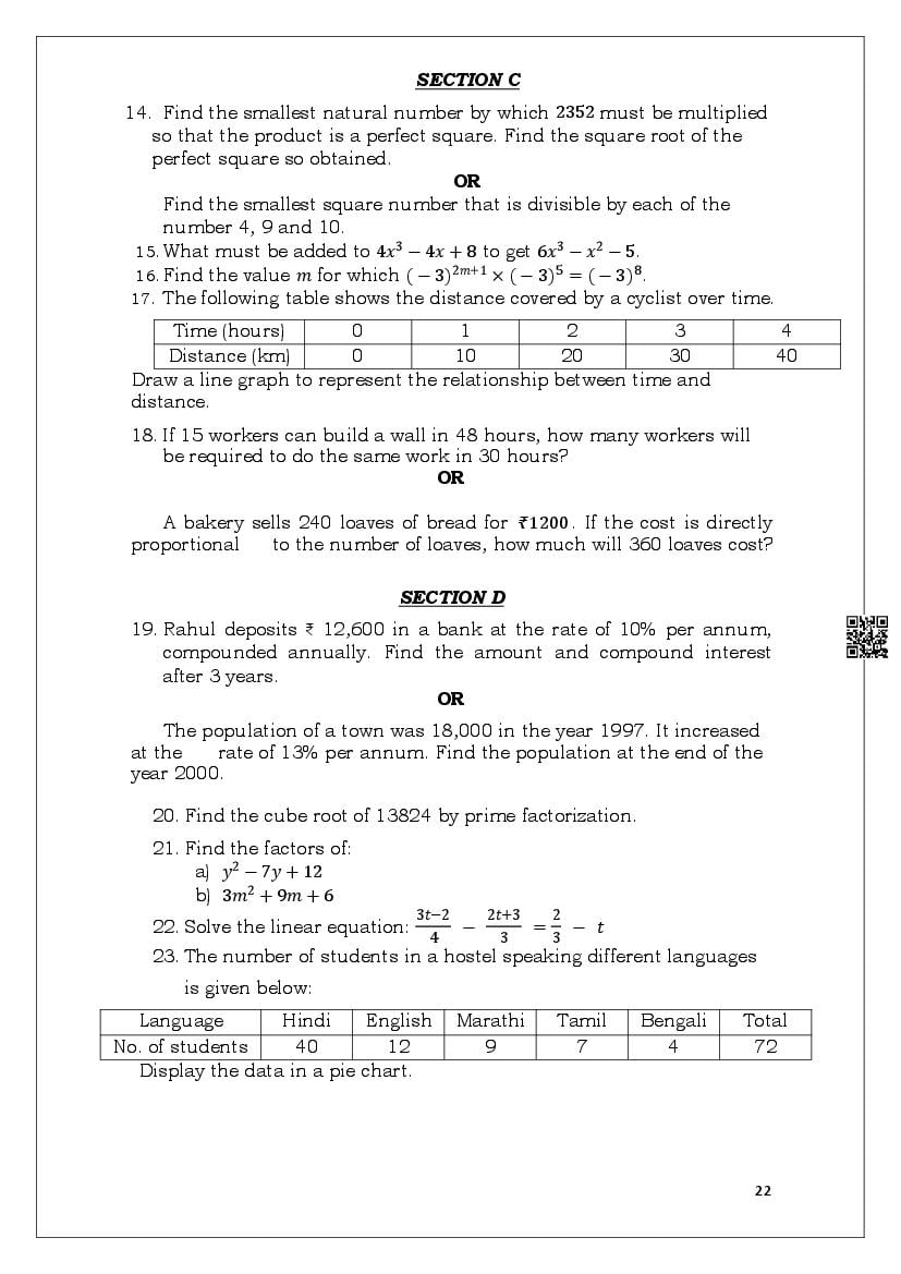 - Class 7 Sample Question Papers