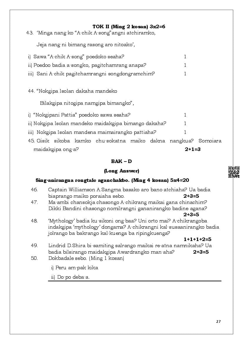 If you have any queries on MBOSE Class 9 Garo Sample Question Paper 2026, then please ask in comments below.