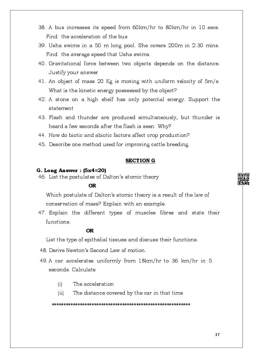 | More Model Papers for This Class | Meghalaya Board Sample Question Paper of Class 9 |