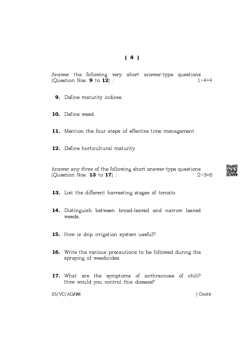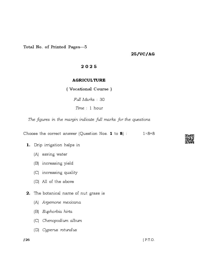 The complete class 10 question paper for Agriculture subject is as follows.