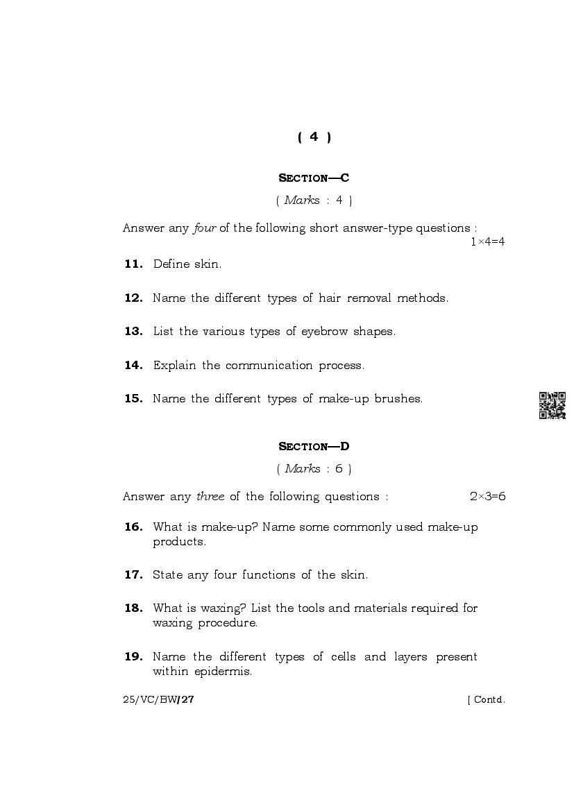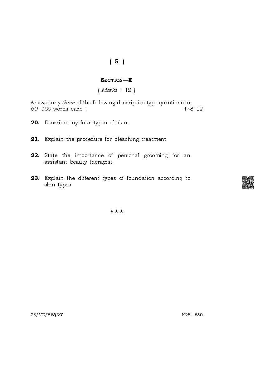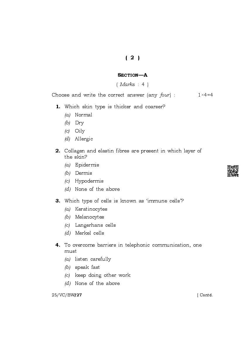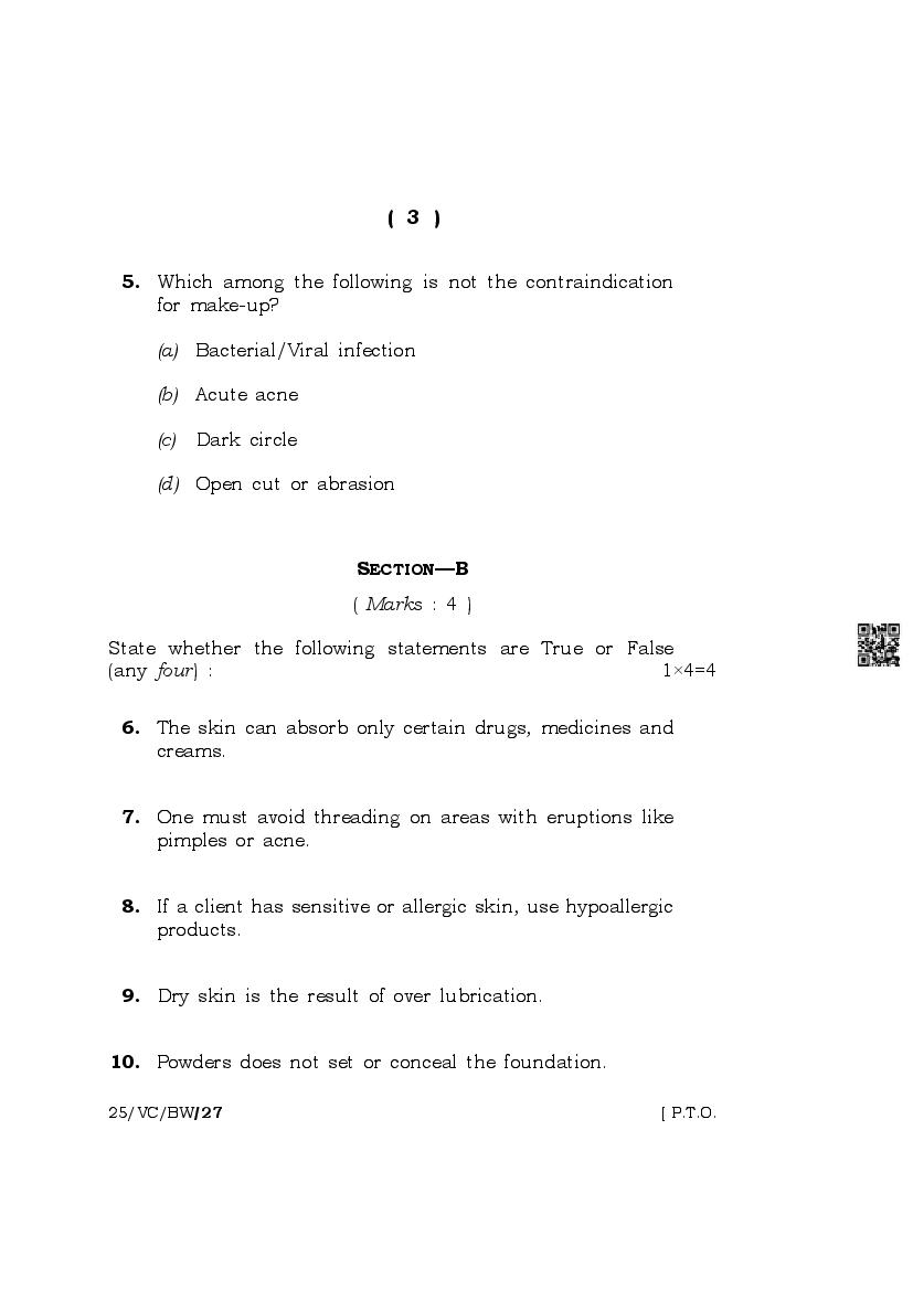 The complete class 10 question paper for Beauty And Wellness subject is as follows.