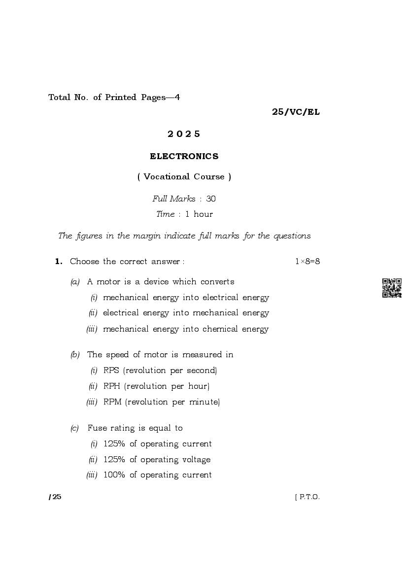 Meghalaya Board (MBOSE) Class 10 Question Paper 2025 for Electronics