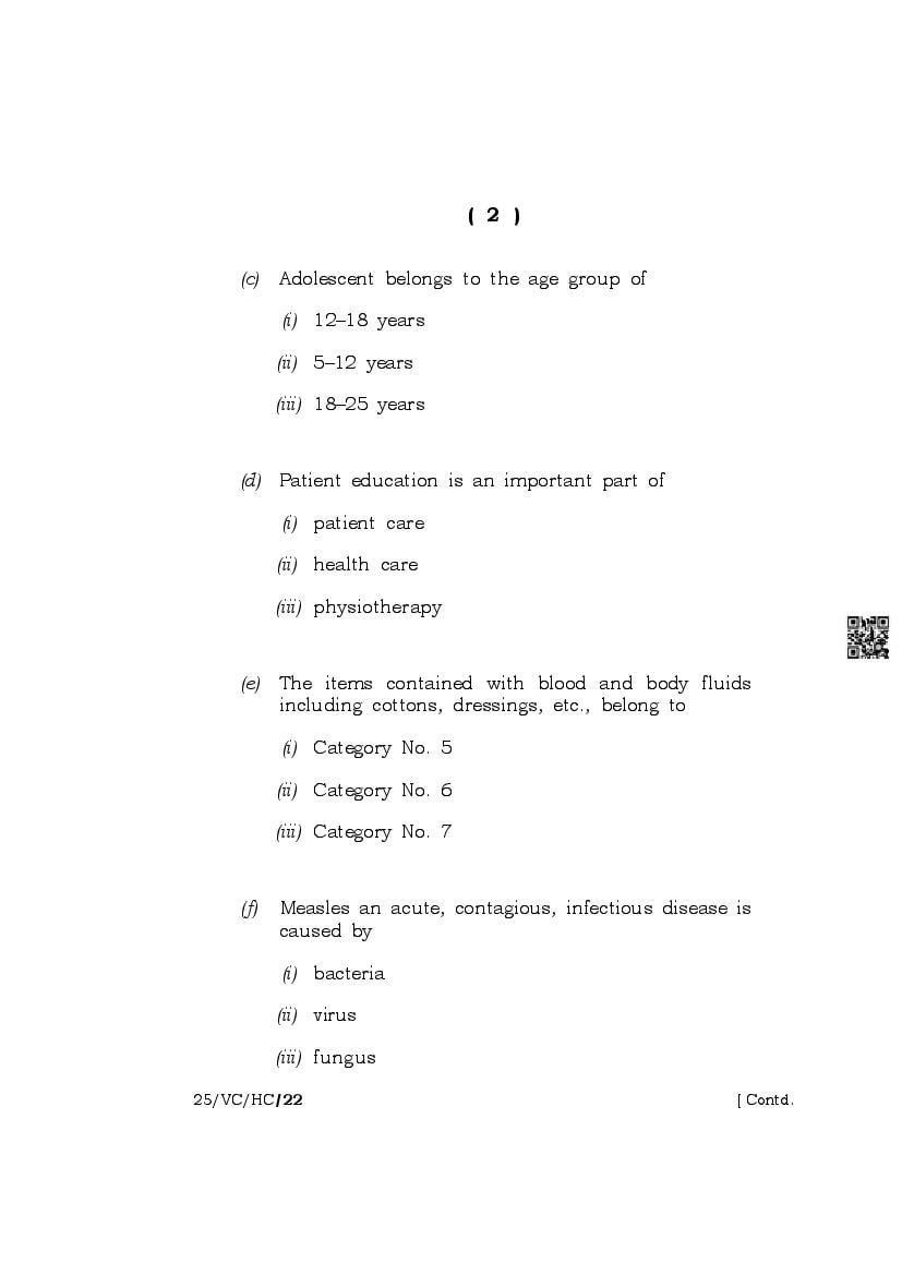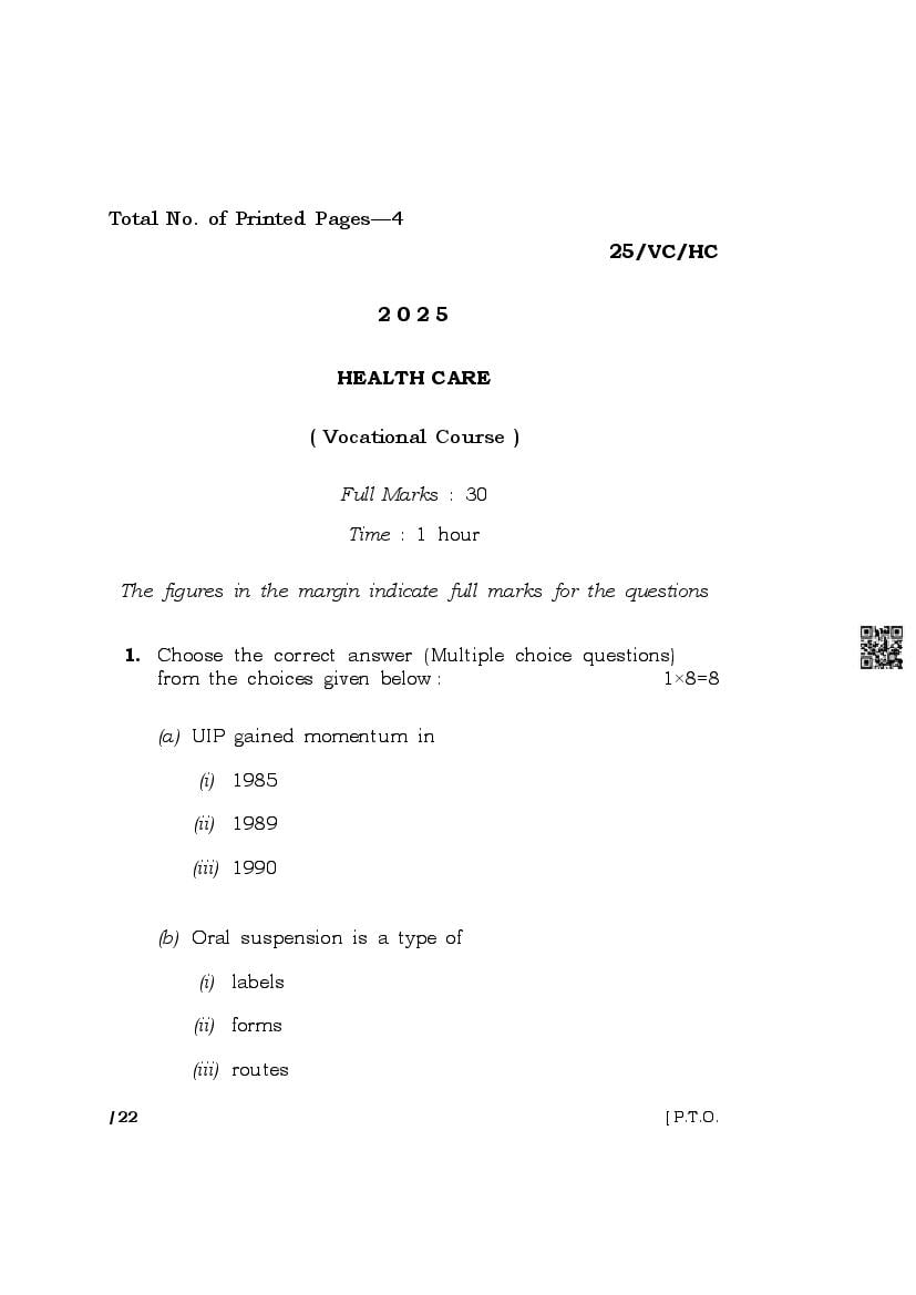 Meghalaya Board (MBOSE) Class 10 Question Paper 2025 for Health Care