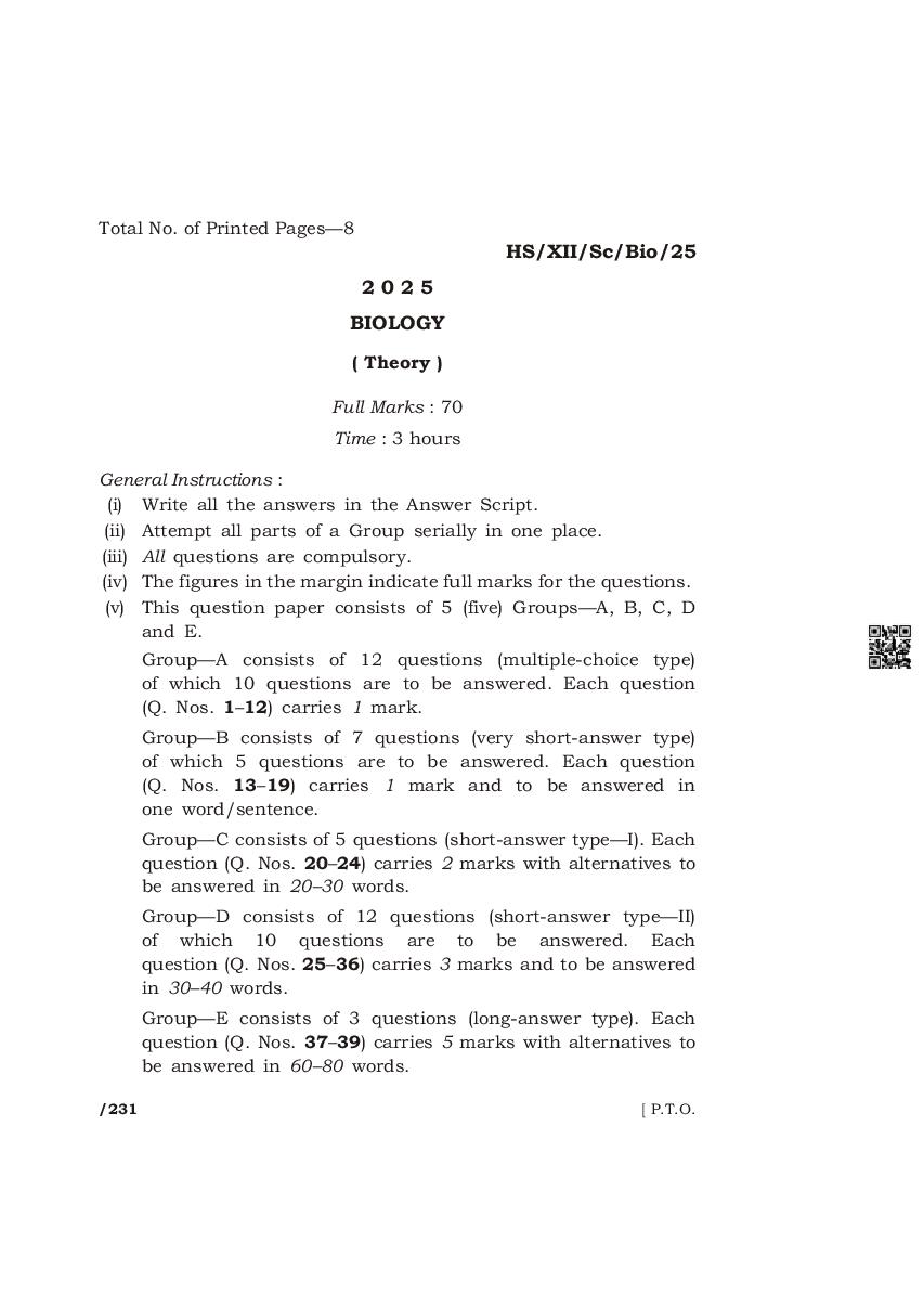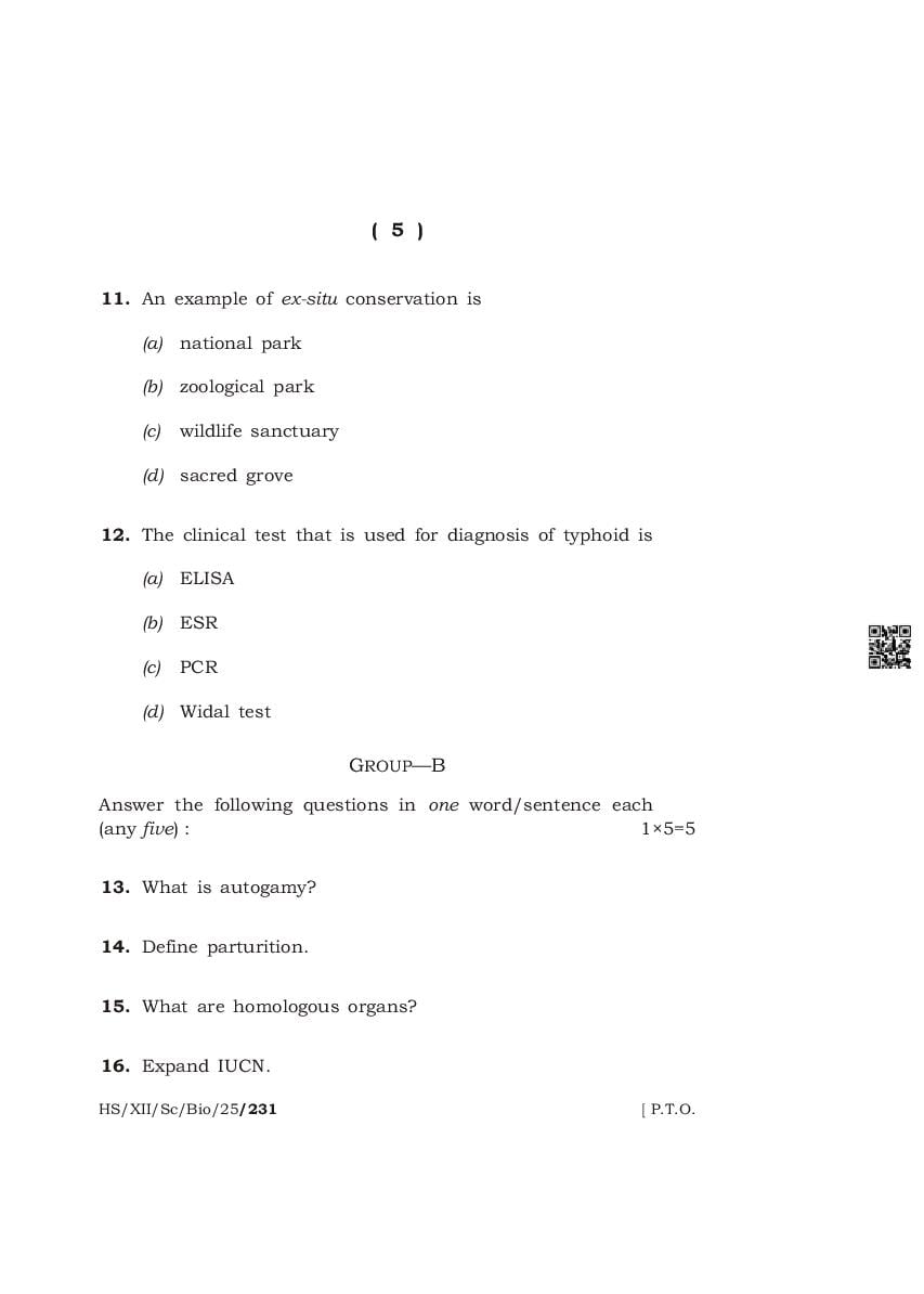 | Paper | Meghalaya Board Class 12 Question Paper of Biology |
