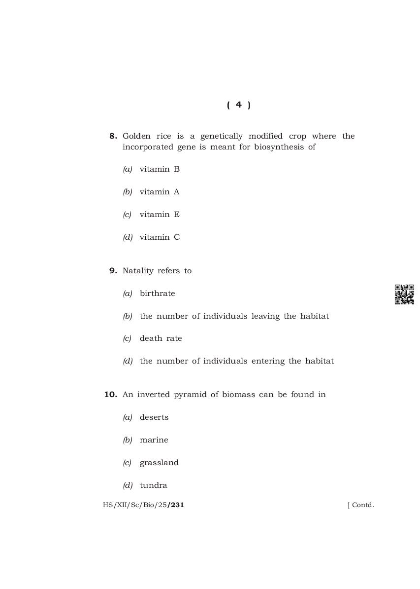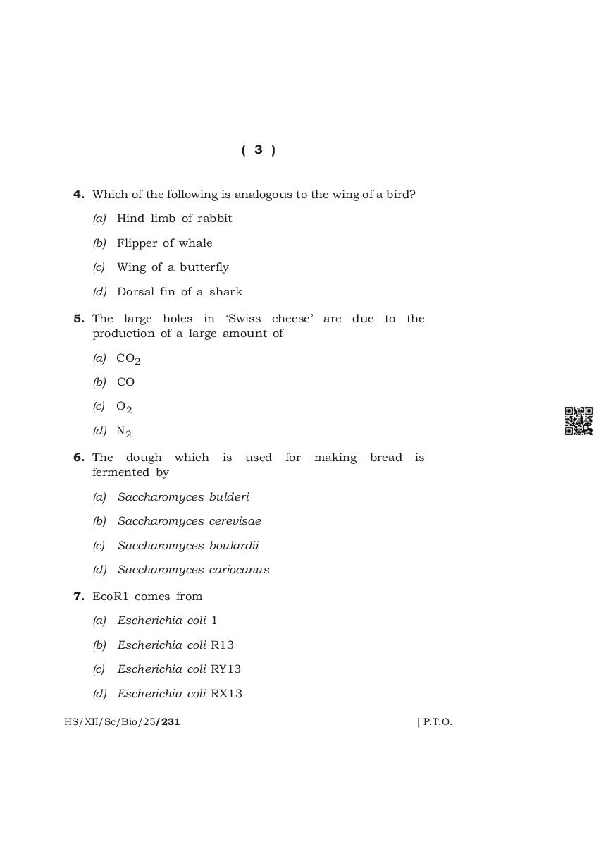 The complete class 12 question paper for Biology subject is as follows.
