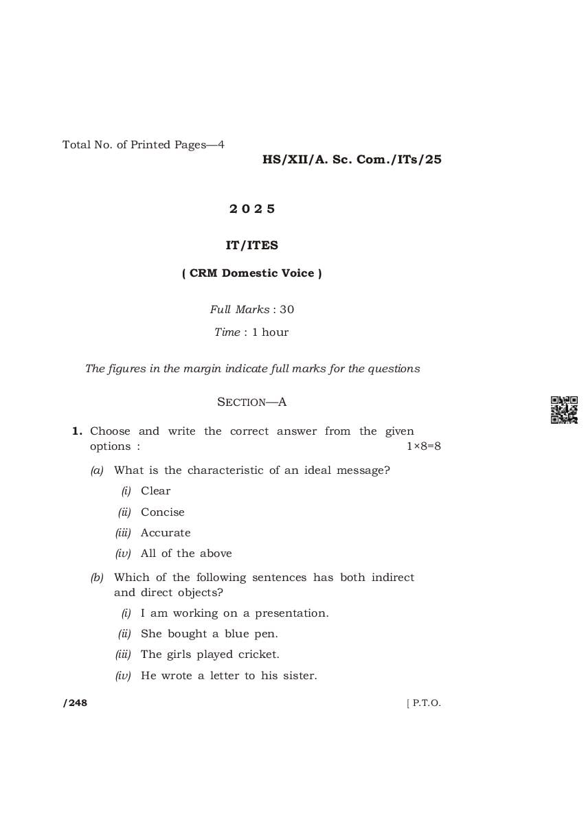 | Paper | Meghalaya Board Class 12 Question Paper of It Ites |