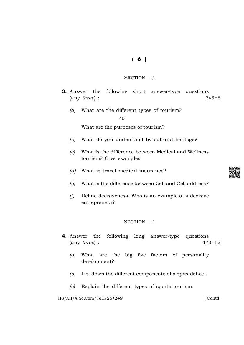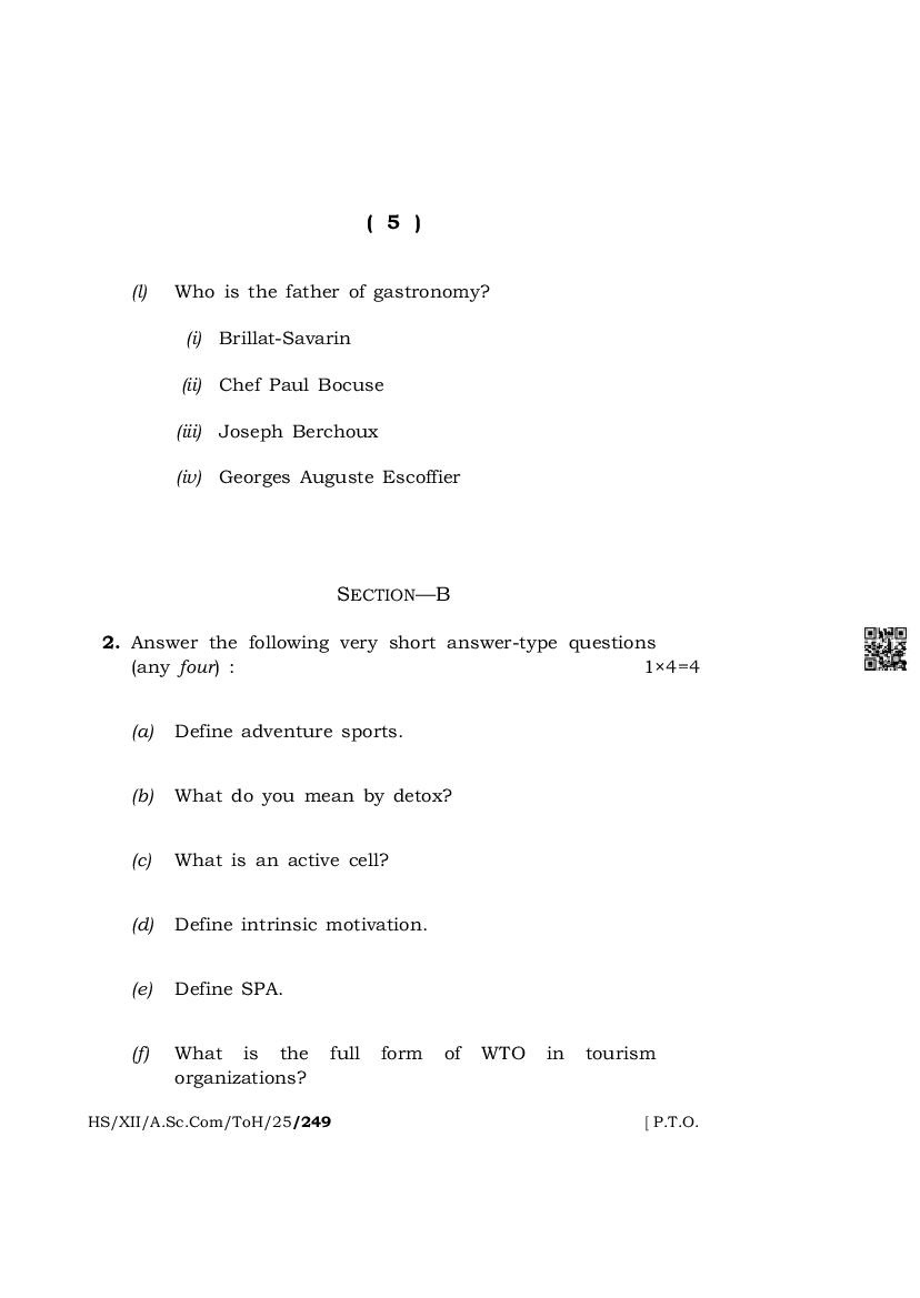 The complete class 12 question paper for Tourism And Hospitality subject is as follows.
