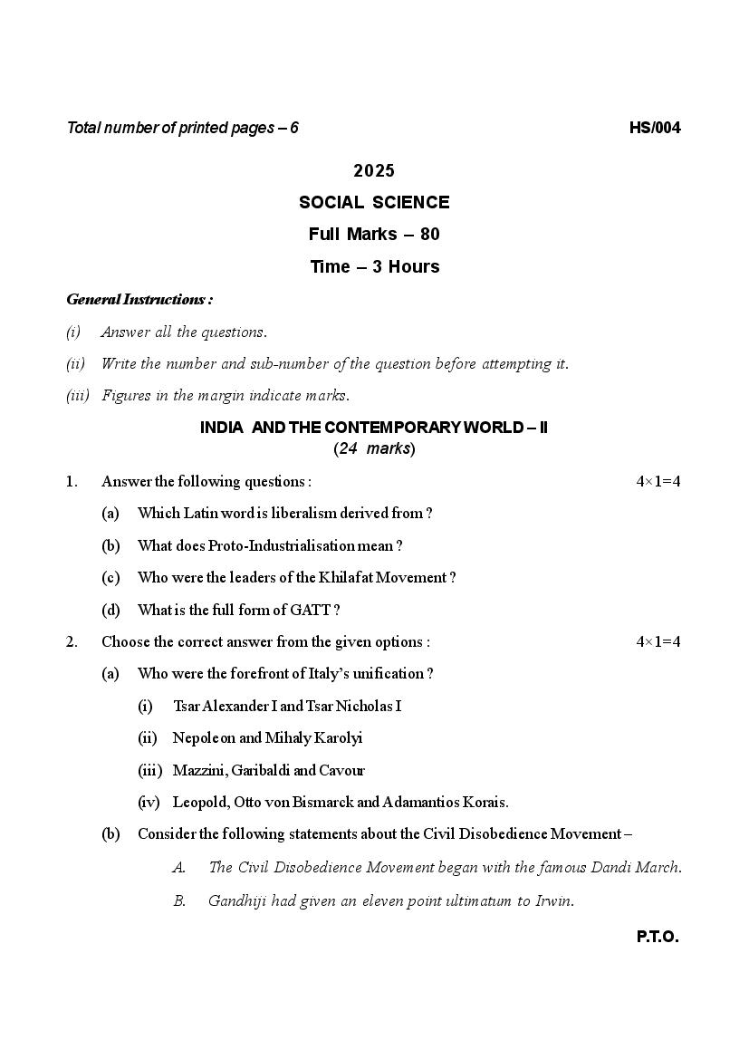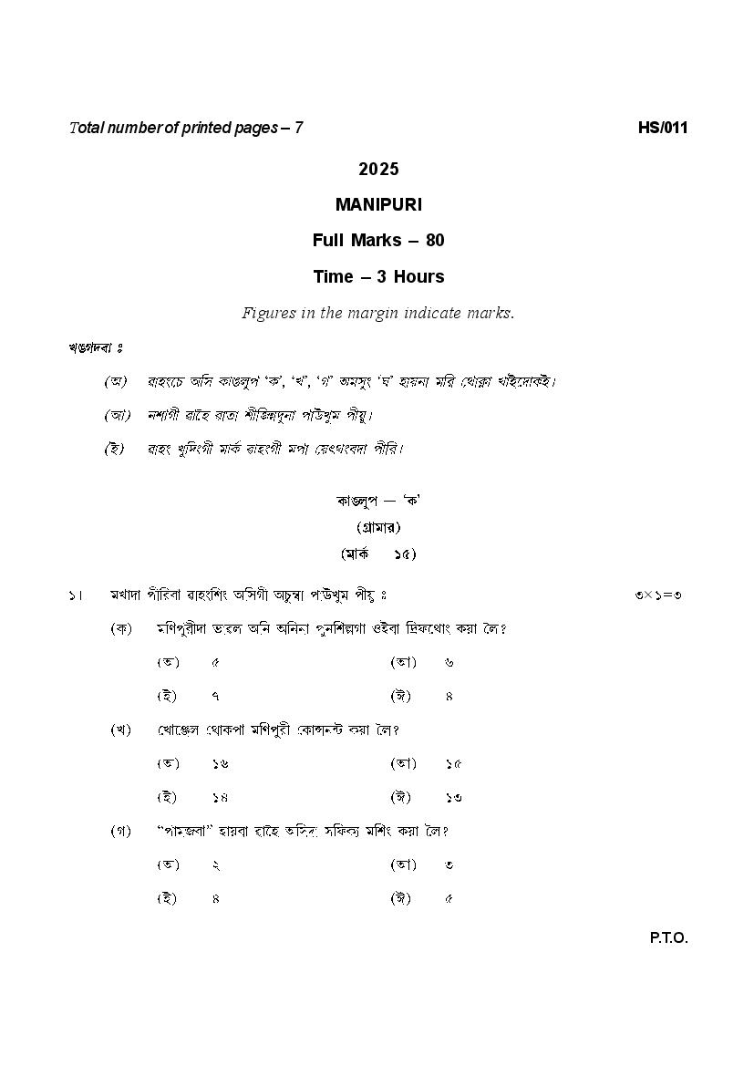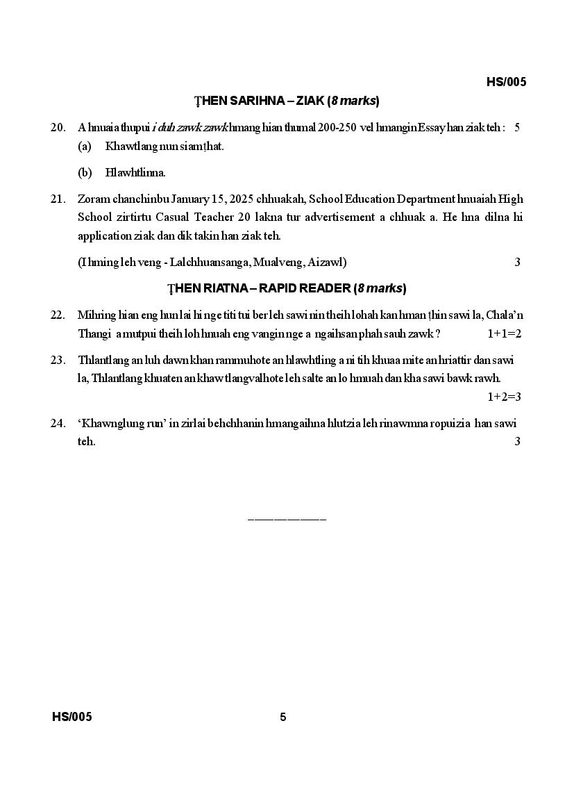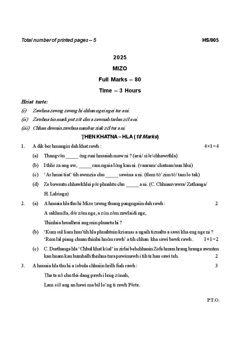 The Mizoram Board Question Paper of Class (HSLC) for 2025 are as follows.