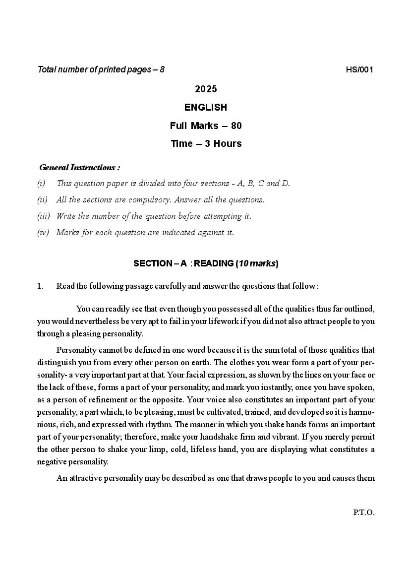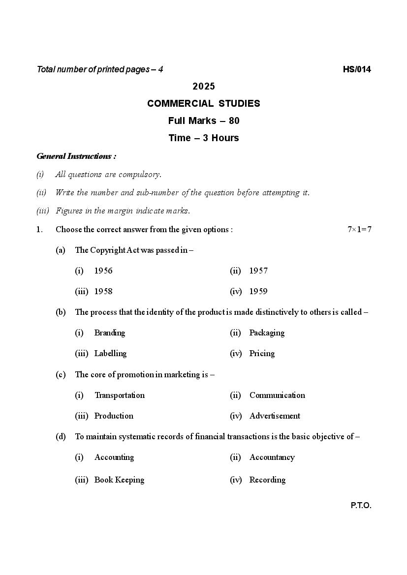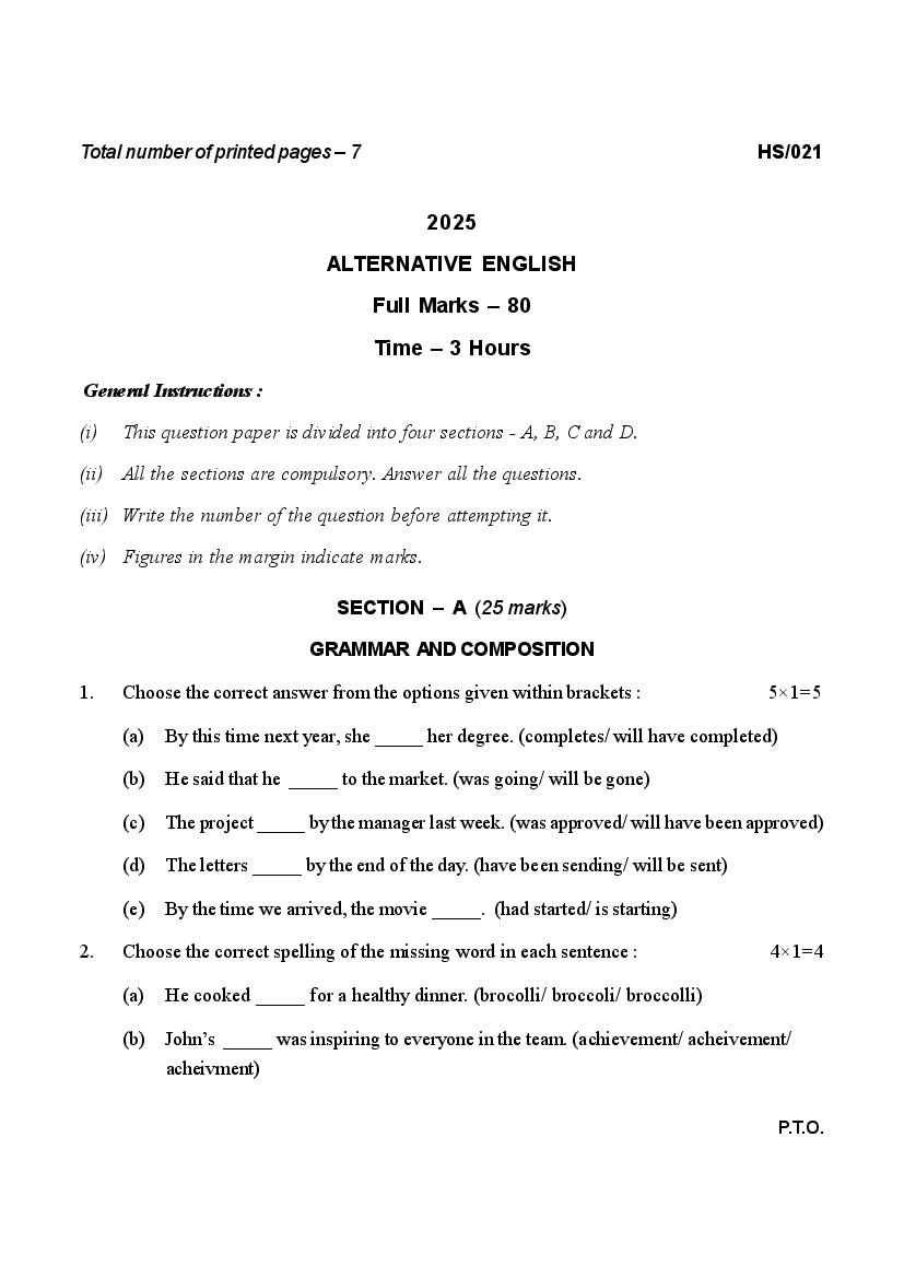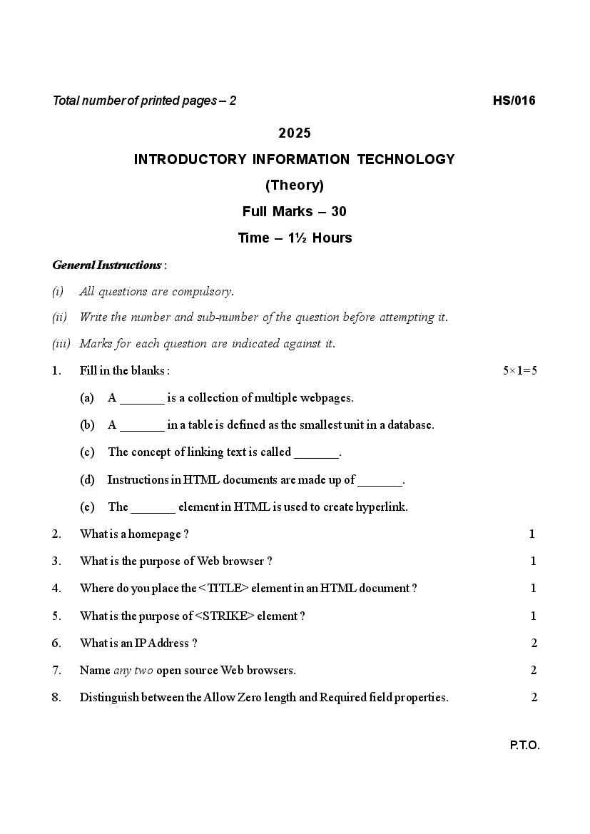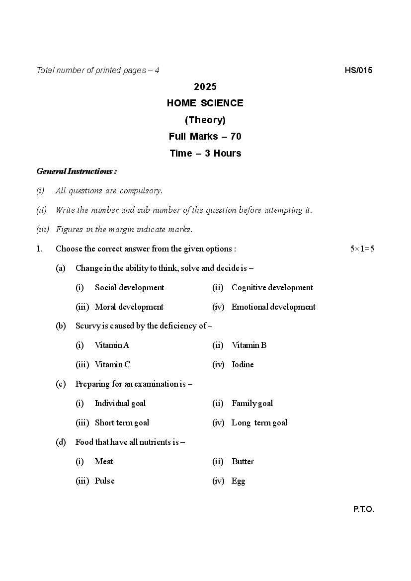 The Mizoram Board Question Paper of Class (HSLC) for 2025 are as follows.