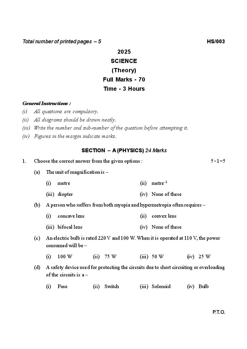 Resource HereMBSE Previous Year Question Paper of Class (HSLC) of 2025
