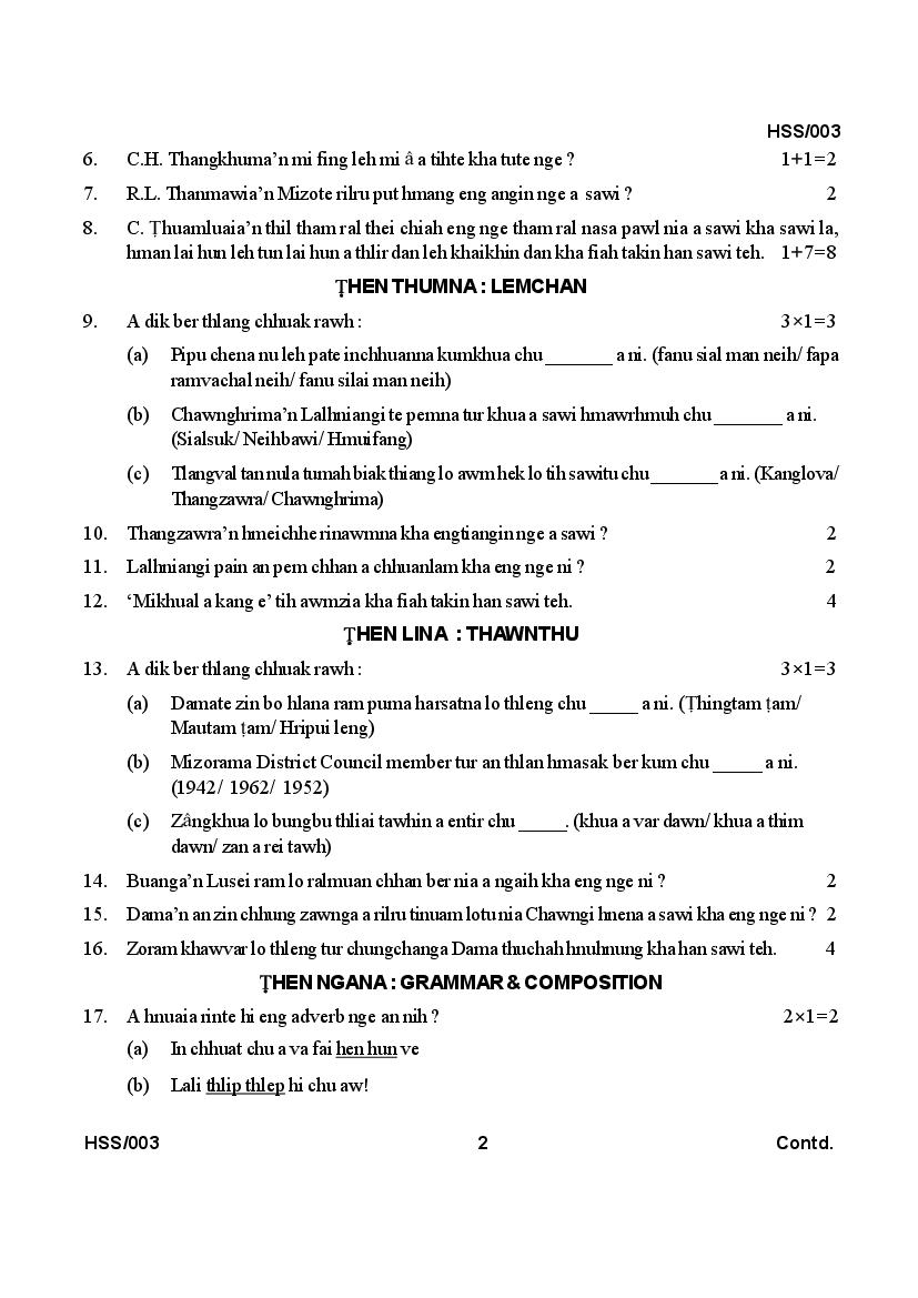 | All Question Papers of This Board | Mizoram Board Previous Year Question Papers |