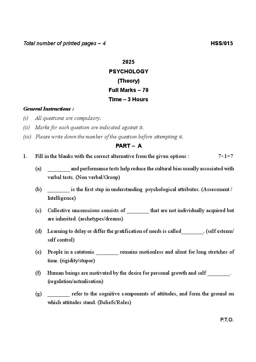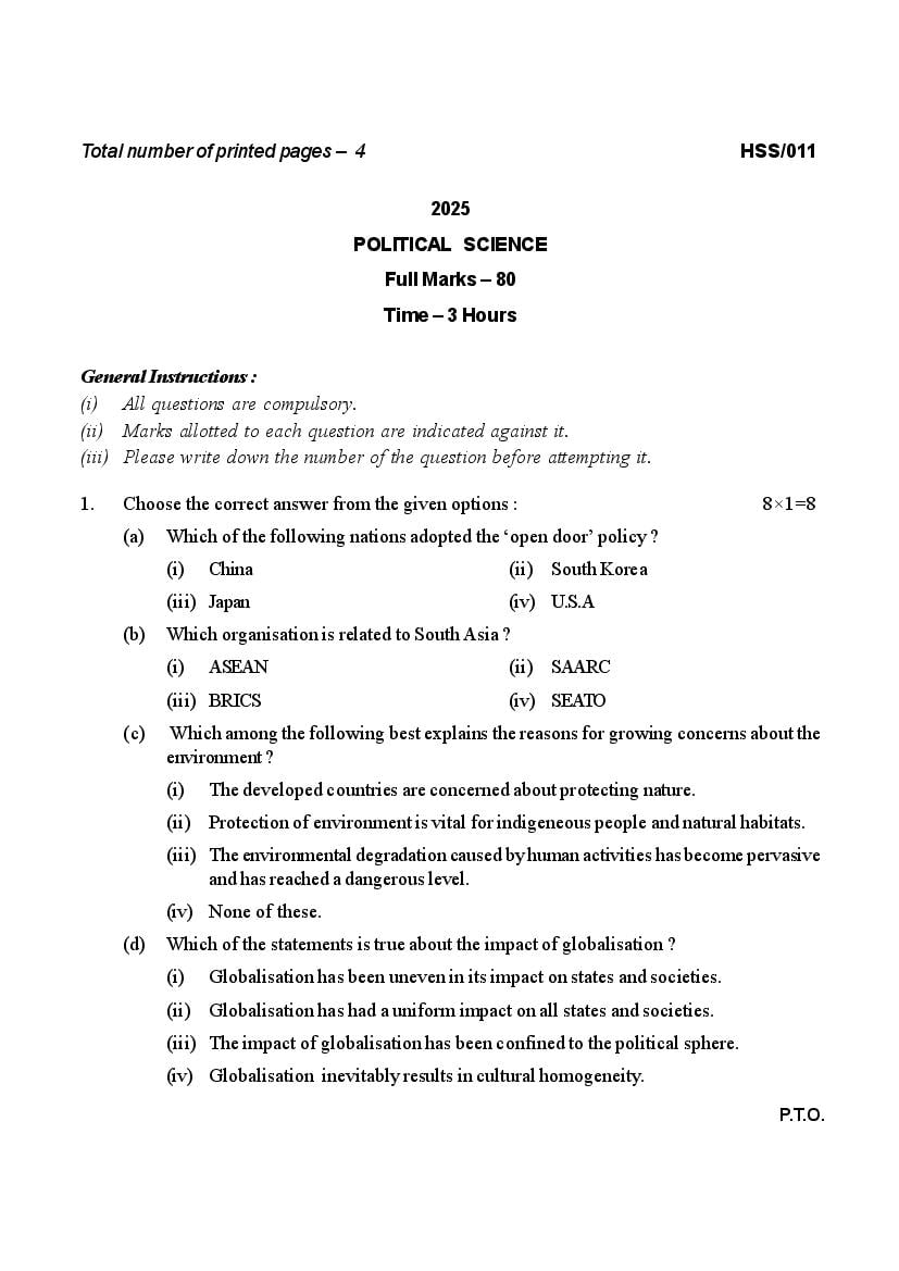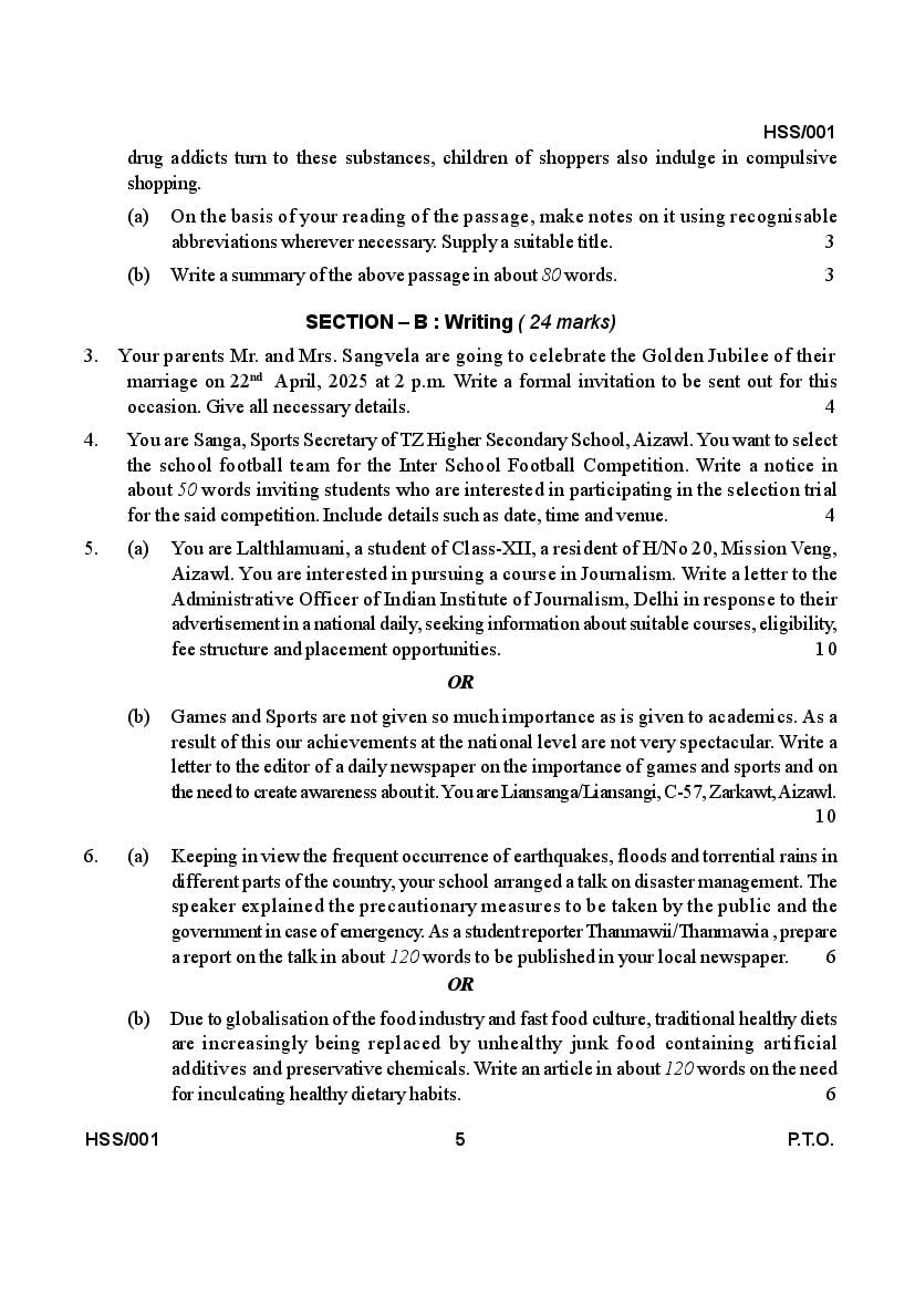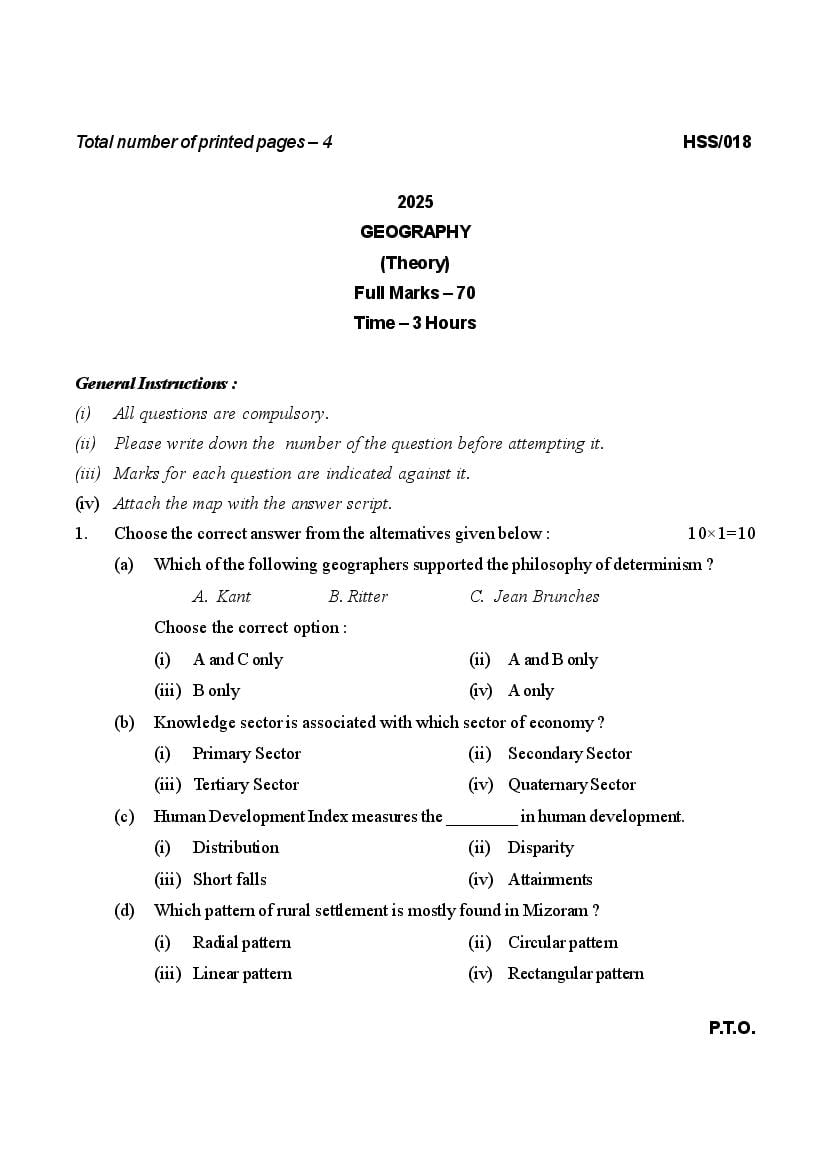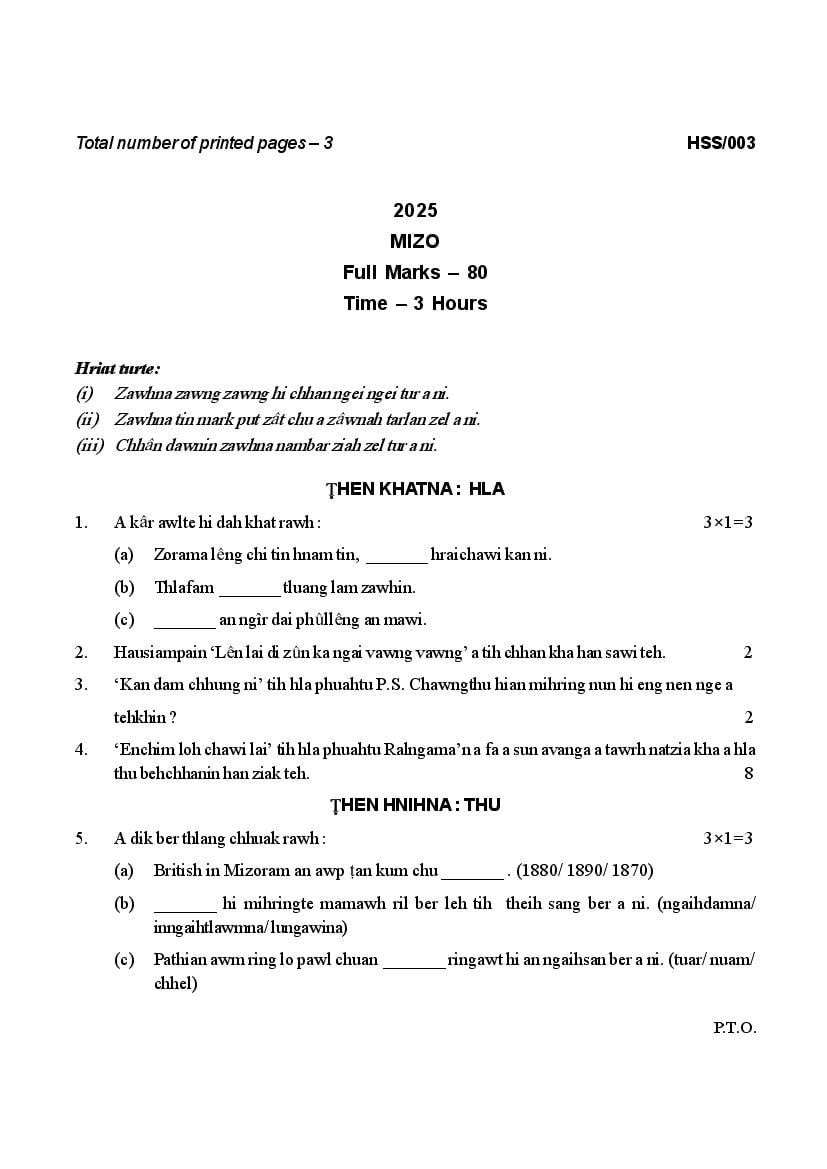 The Mizoram Board Question Paper of Class (HSSLC) for 2025 are as follows.