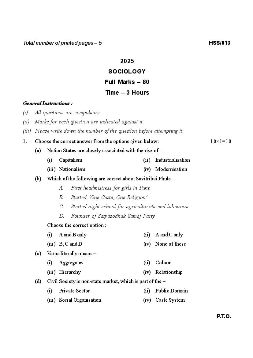 MBSE HSSLC Question Papers 2025 [Arts Stream] – Click Here to Download Question Paper PDF
