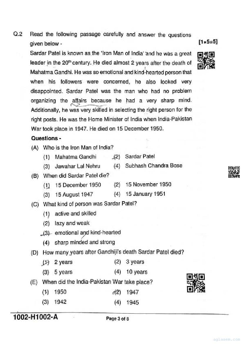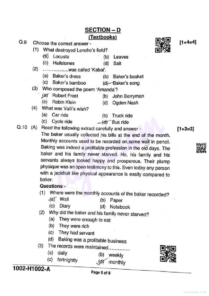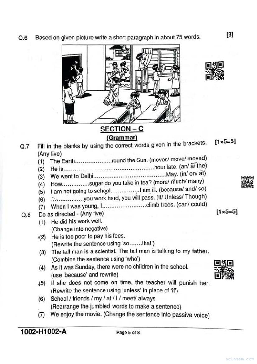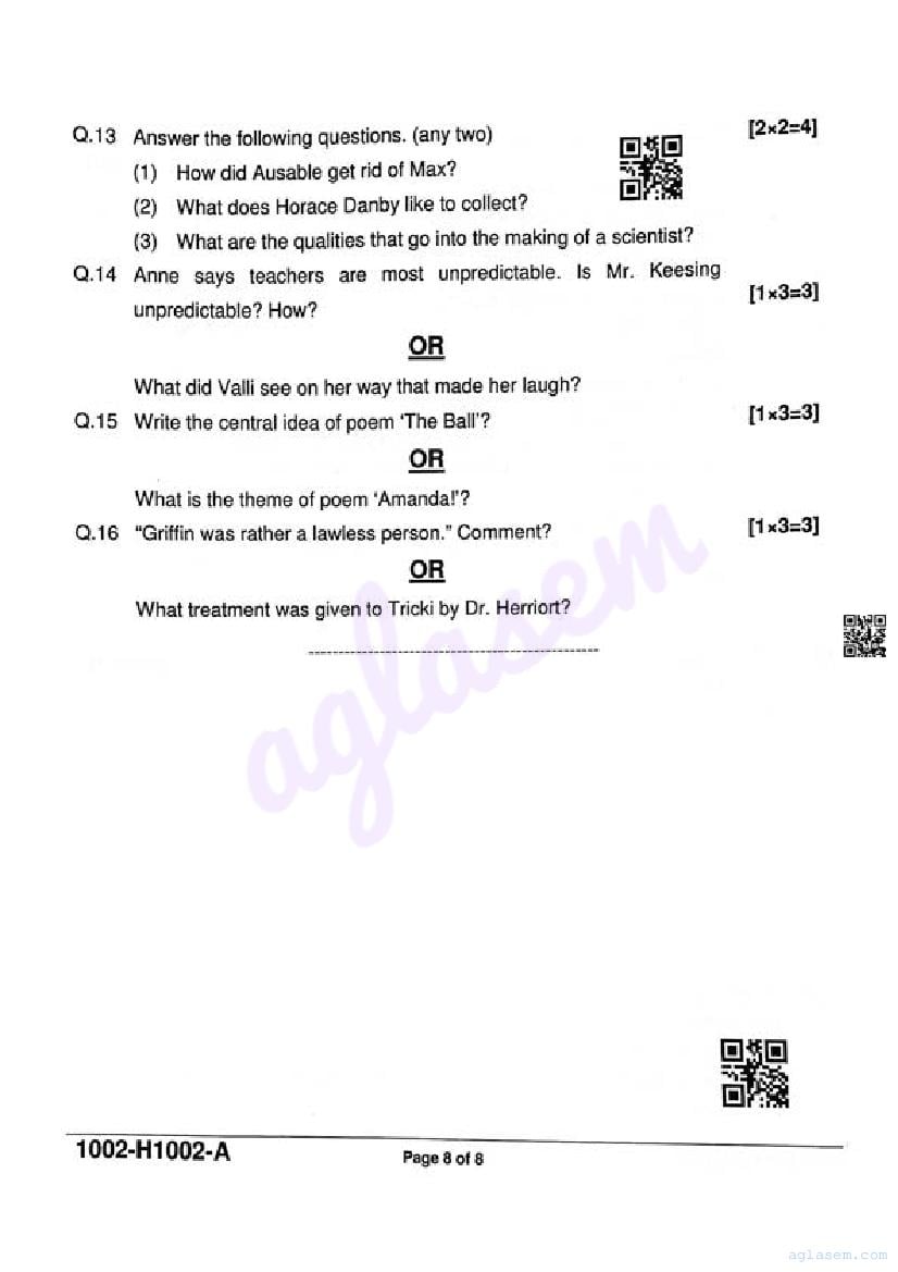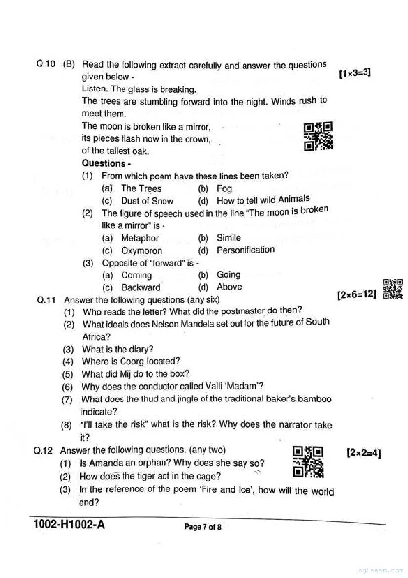 It is a good idea to download the class 10 English question paper from aglasem, using above link. However if you want to read all the questions in 10th standard ardhvaarshik pariksha for English, then you can also view the complete English question paper here itself. The entire contents of the ardhvaarshik pariksha question paper for class 10 English are as follows.