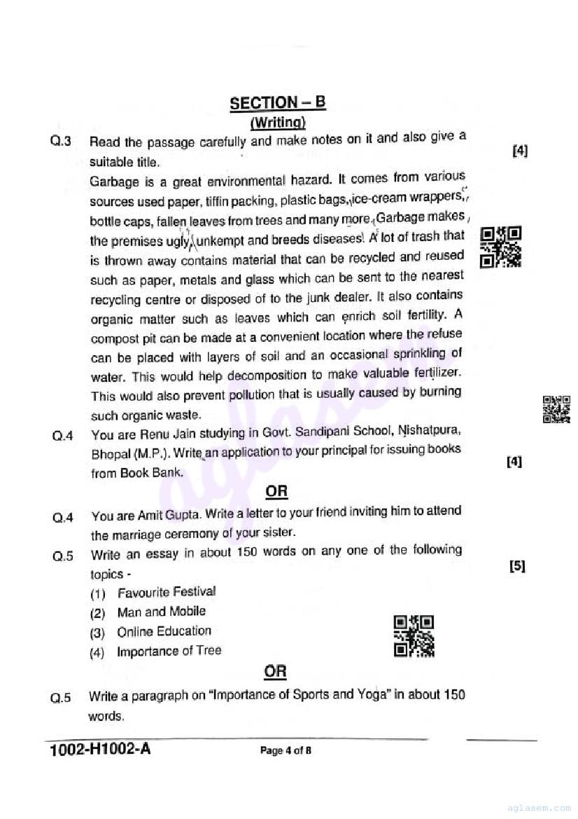 The latest available mp board half-yearly examination question paper is as follows