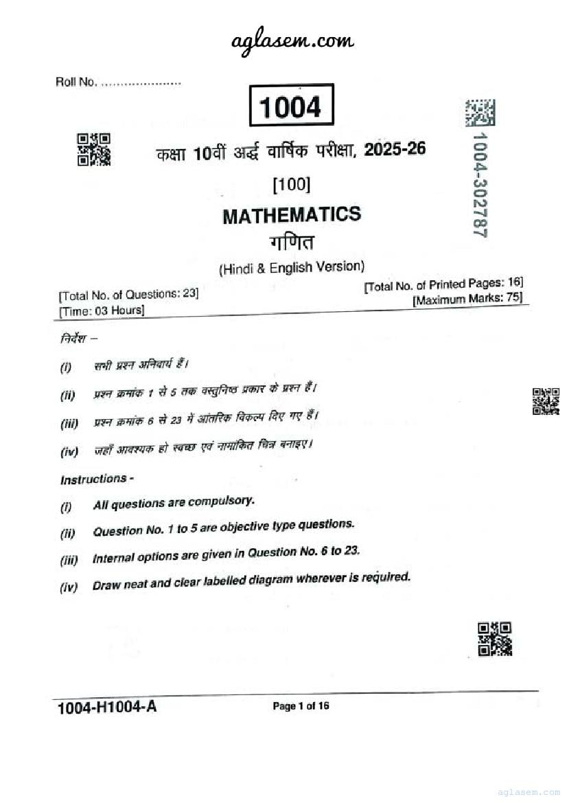 MP Board Class 10th Mathematics Ardhvaarshik Paper 2025-26