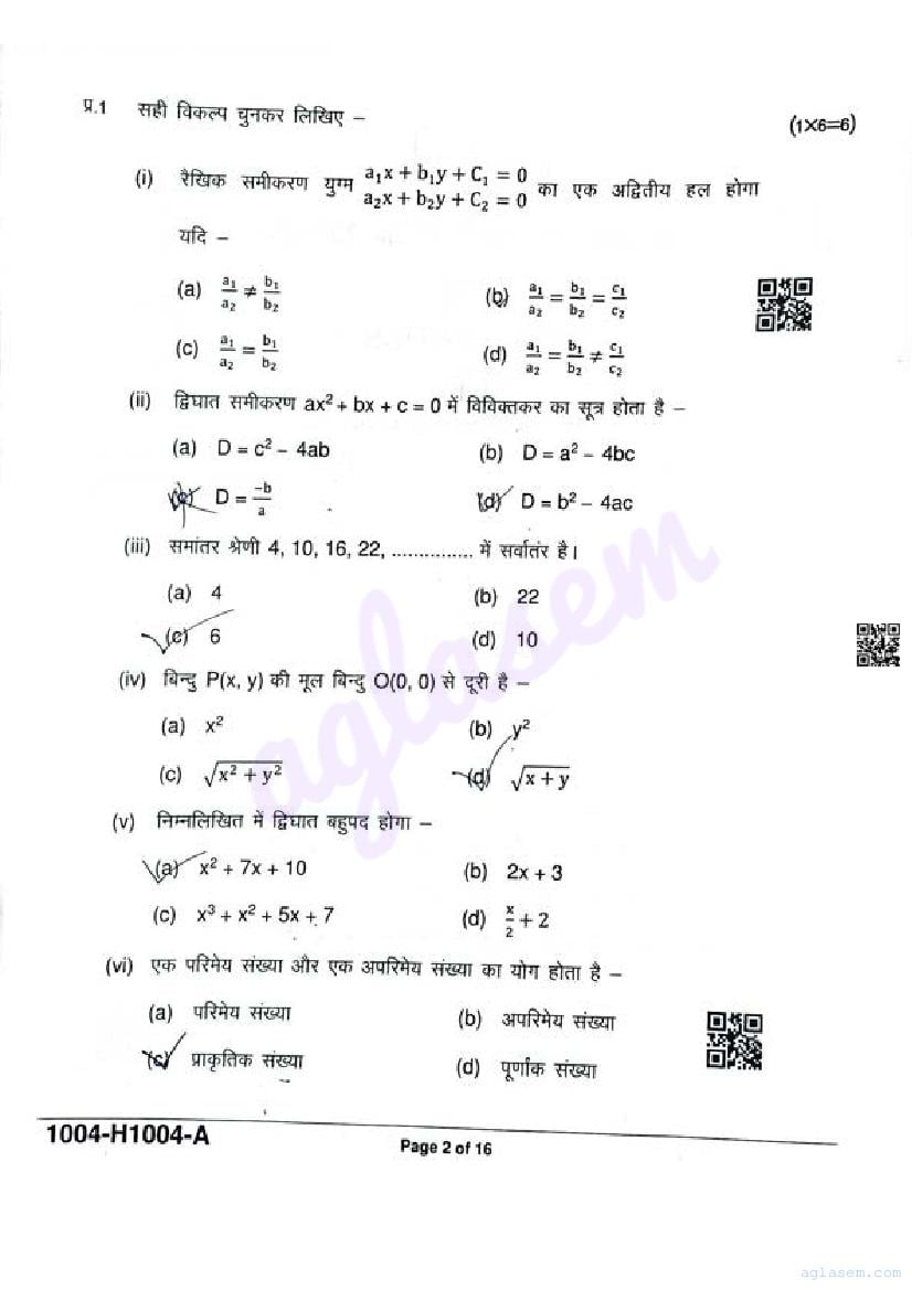 The MP Board Question Paper of class 10 Ardhvaarshik Exam for Mathematics subject is as follows.