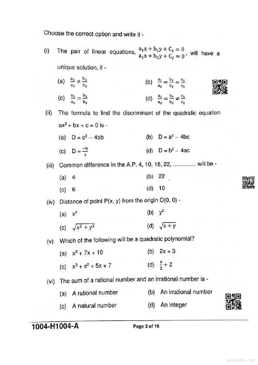 It is a good idea to download the class 10 Mathematics question paper from aglasem, using above link. However if you want to read all the questions in 10th standard ardhvaarshik pariksha for Mathematics, then you can also view the complete Mathematics question paper here itself. The entire contents of the ardhvaarshik pariksha question paper for class 10 Mathematics are as follows.