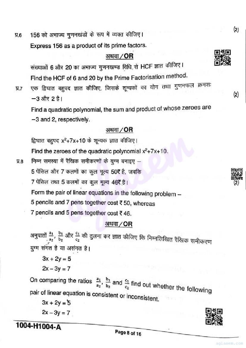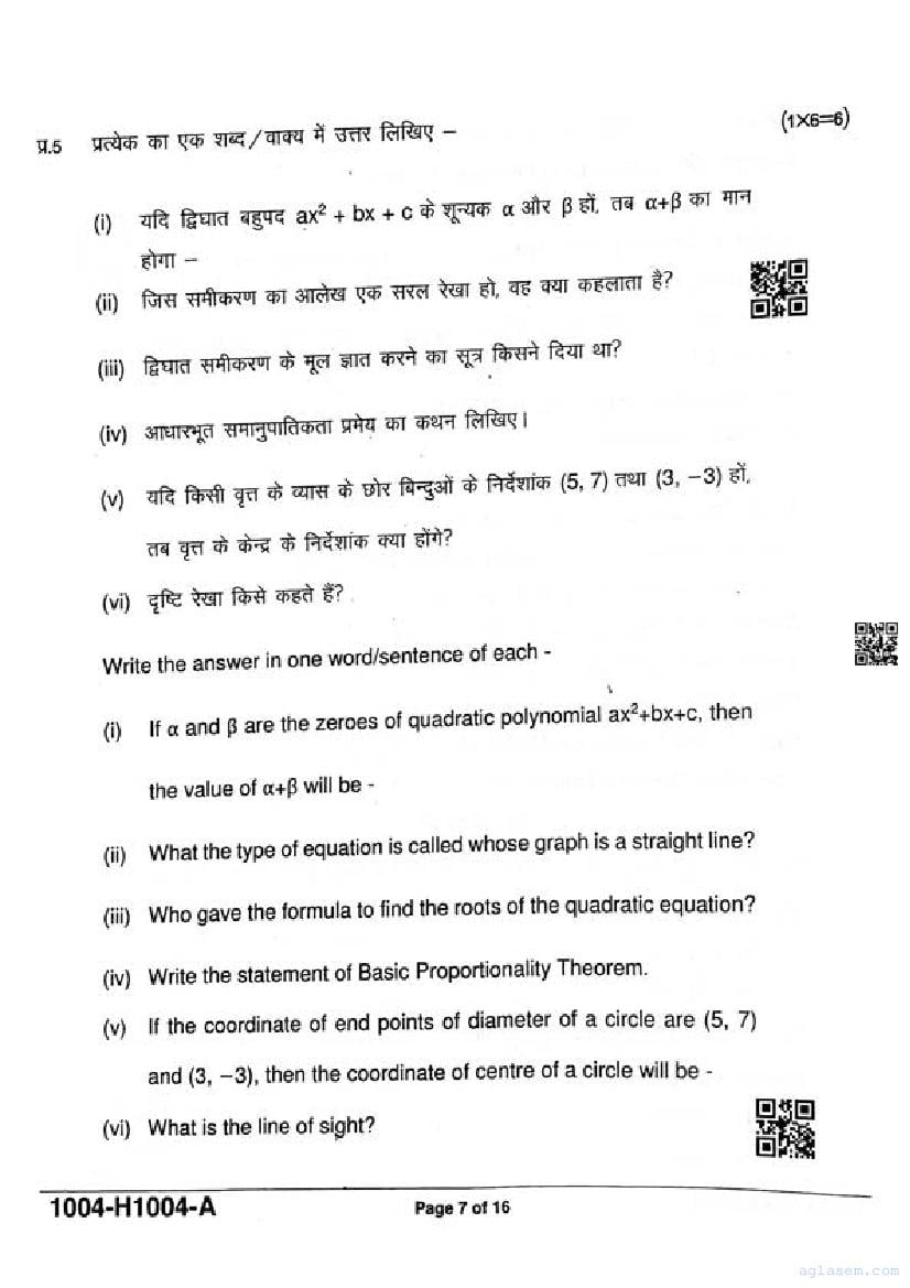 After solving the ardhvaarshik pariksha paper of Mathematics, you can download the half-yearly exam question papers for all subjects of class 10.