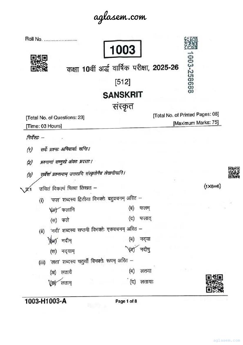 | Paper | Madhya Pradesh Class 10 Sanskrit Ardhvaarshik Pariksha Question Paper |