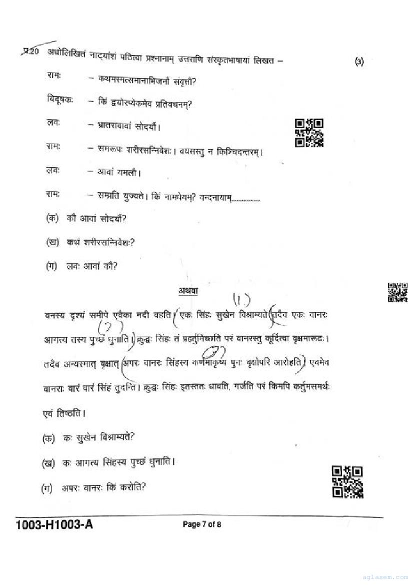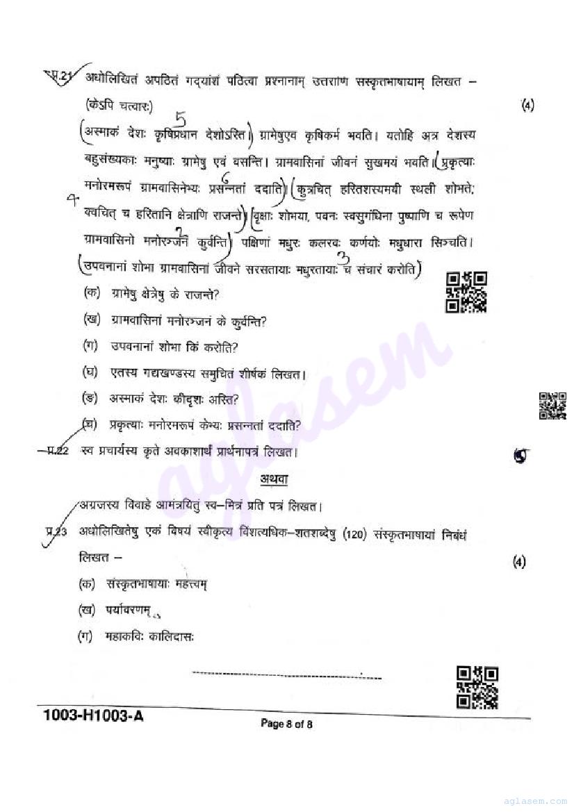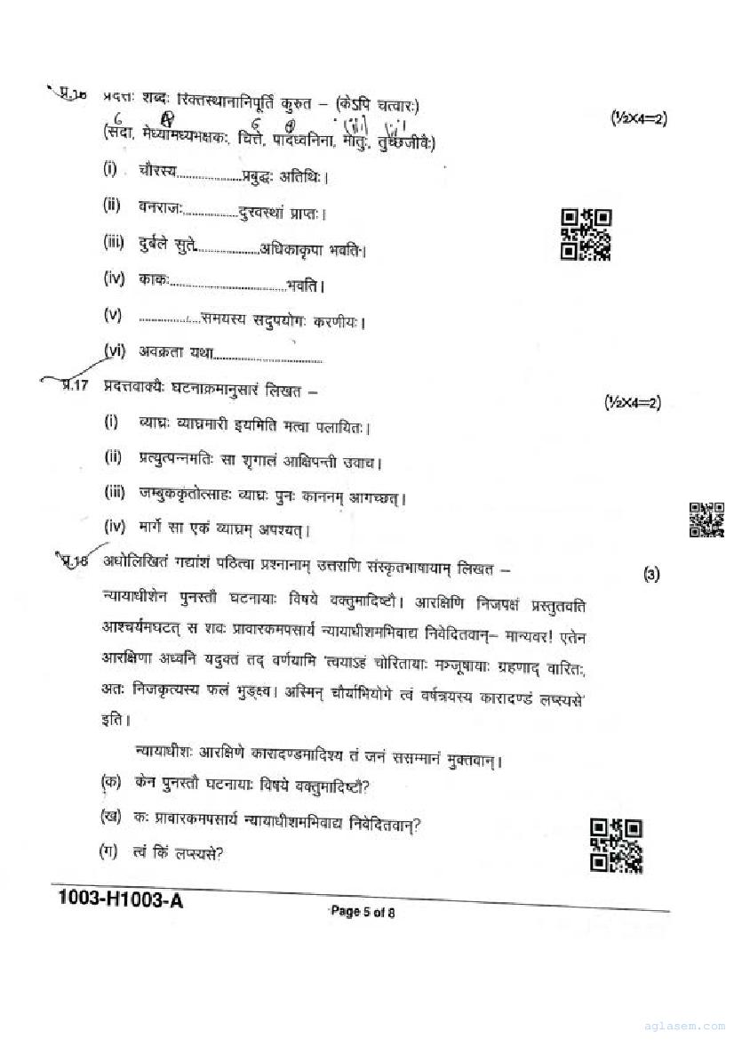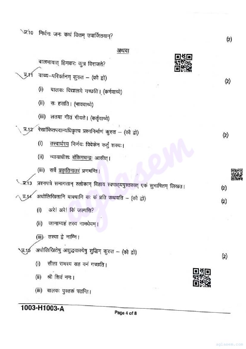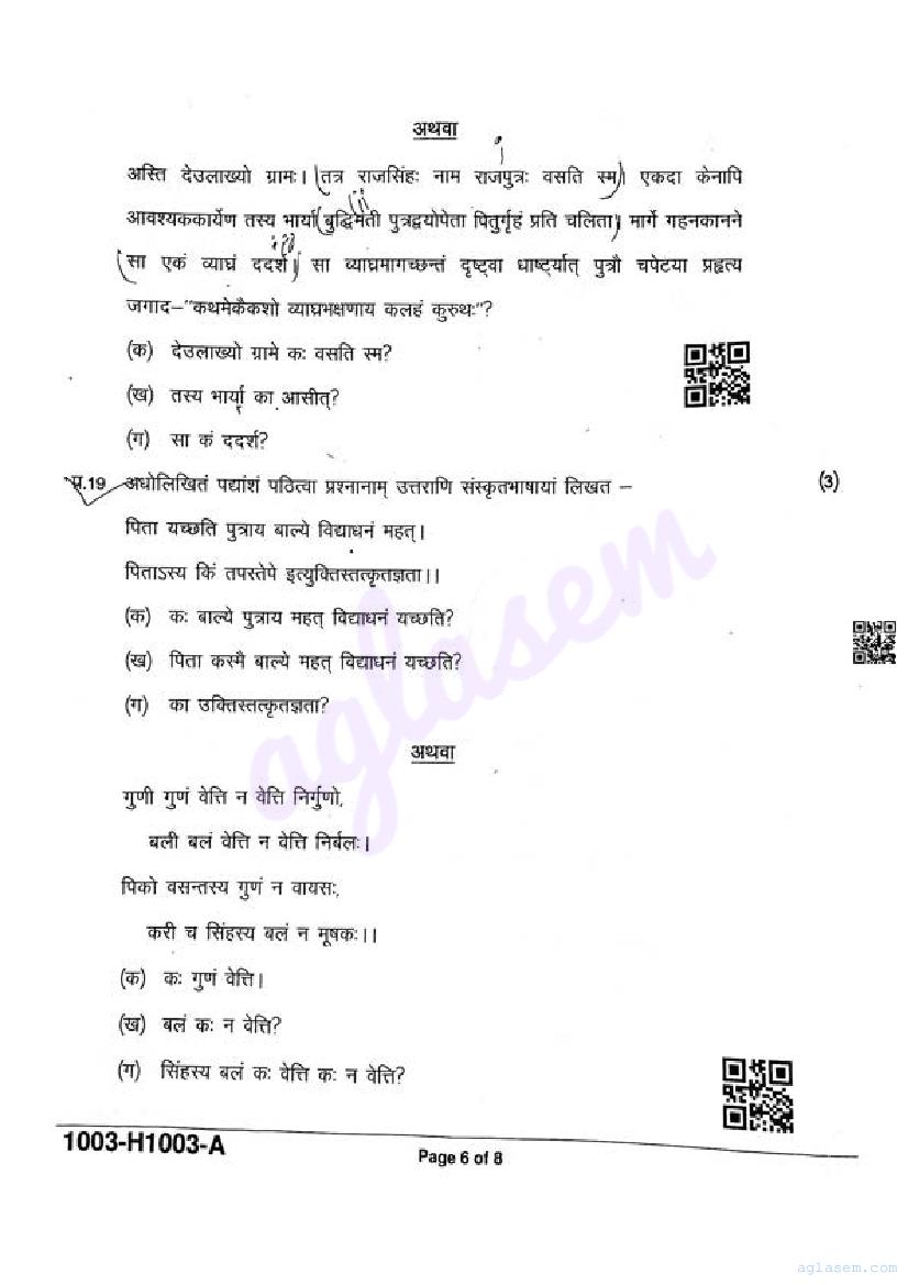 It is a good idea to download the class 10 Sanskrit question paper from aglasem, using above link. However if you want to read all the questions in 10th standard ardhvaarshik pariksha for Sanskrit, then you can also view the complete Sanskrit question paper here itself. The entire contents of the ardhvaarshik pariksha question paper for class 10 Sanskrit are as follows.