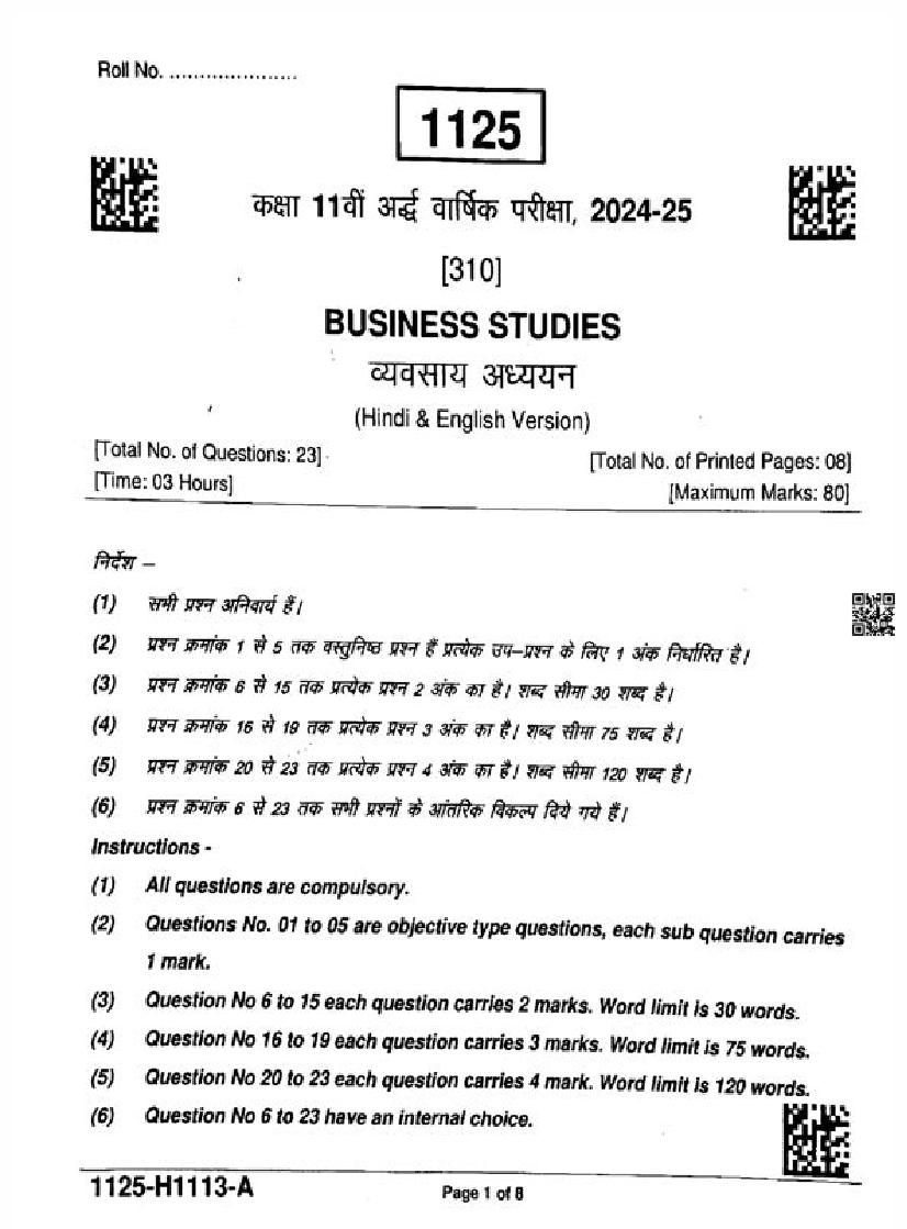 After solving the ardhvaarshik pariksha paper of Business Studies, you can download the half-yearly exam question papers for all subjects of class 11.