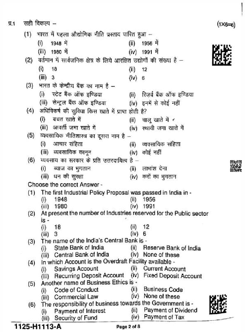 | Paper | Madhya Pradesh Class 11 Business Studies Ardhvaarshik Pariksha Question Paper |