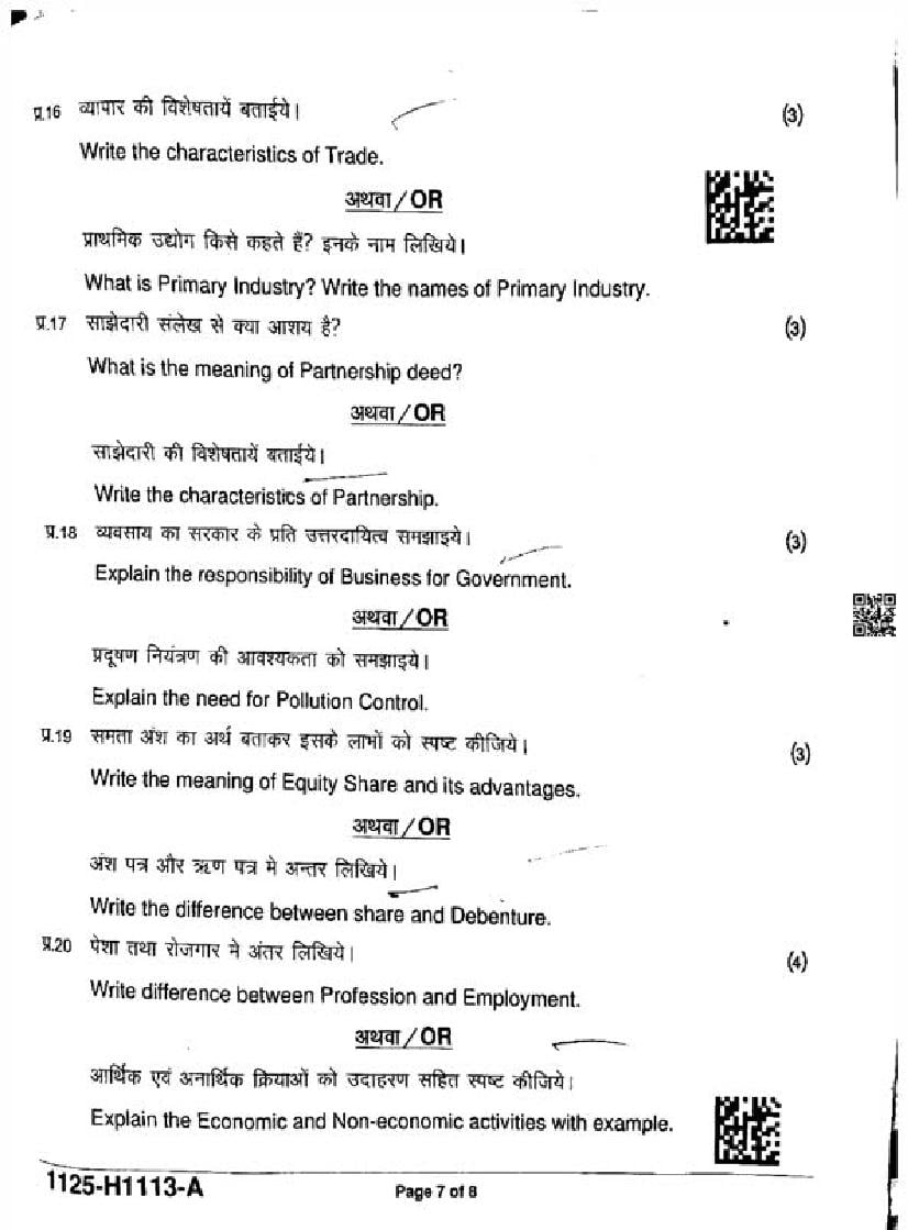 The MP Board Question Paper of class 11 Ardhvaarshik Exam for Business Studies subject is as follows.