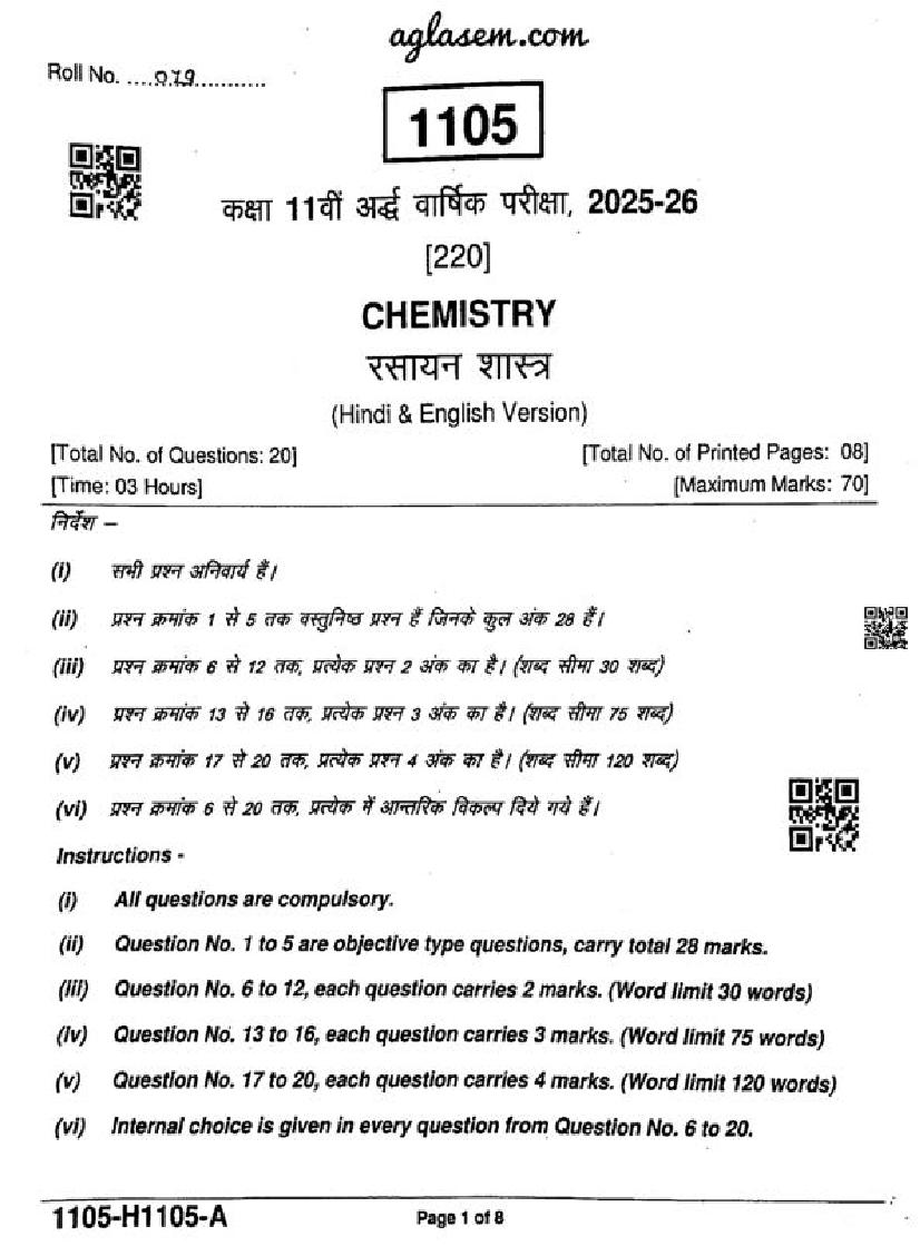 After solving the ardhvaarshik pariksha paper of Chemistry, you can download the half-yearly exam question papers for all subjects of class 11.