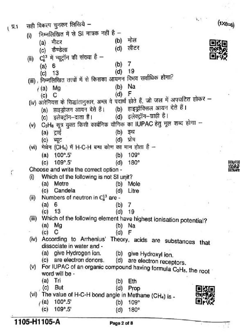 | Paper | Madhya Pradesh Class 11 Chemistry Ardhvaarshik Pariksha Question Paper |