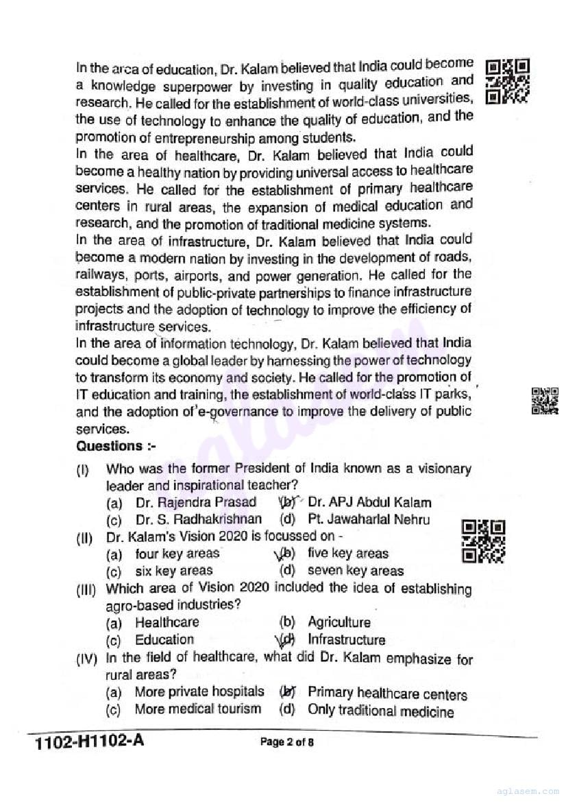 The MP Board Question Paper of class 11 Ardhvaarshik Exam for English subject is as follows.