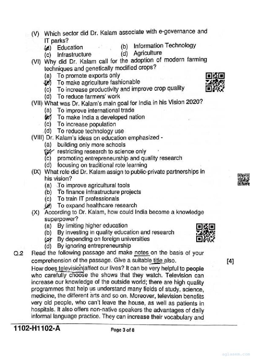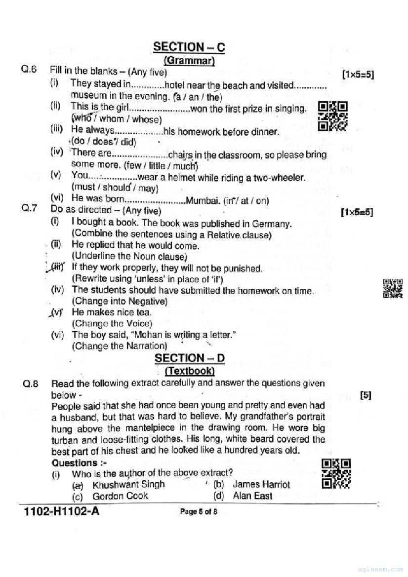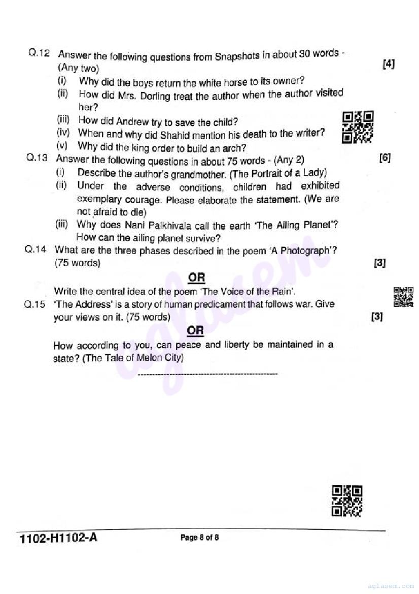 It is a good idea to download the class 11 English question paper from aglasem, using above link. However if you want to read all the questions in 11th standard ardhvaarshik pariksha for English, then you can also view the complete English question paper here itself. The entire contents of the ardhvaarshik pariksha question paper for class 11 English are as follows.