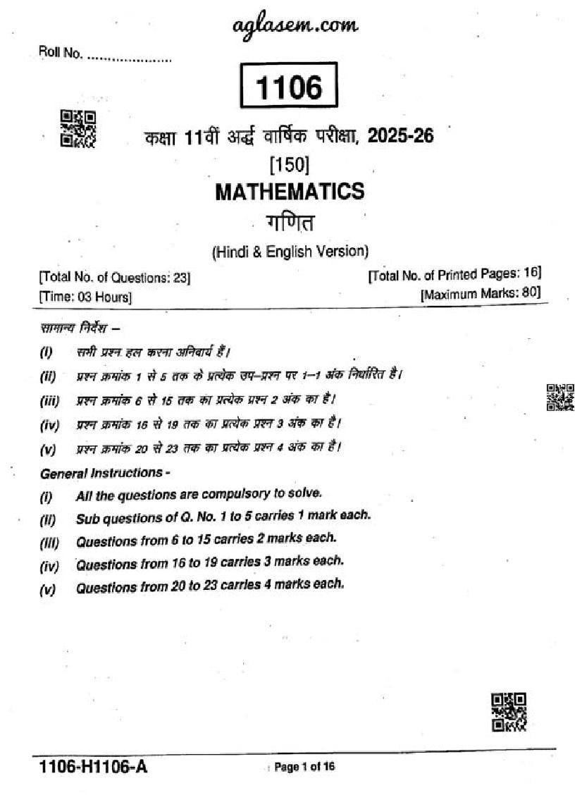 After solving the ardhvaarshik pariksha paper of Mathematics, you can download the half-yearly exam question papers for all subjects of class 11.