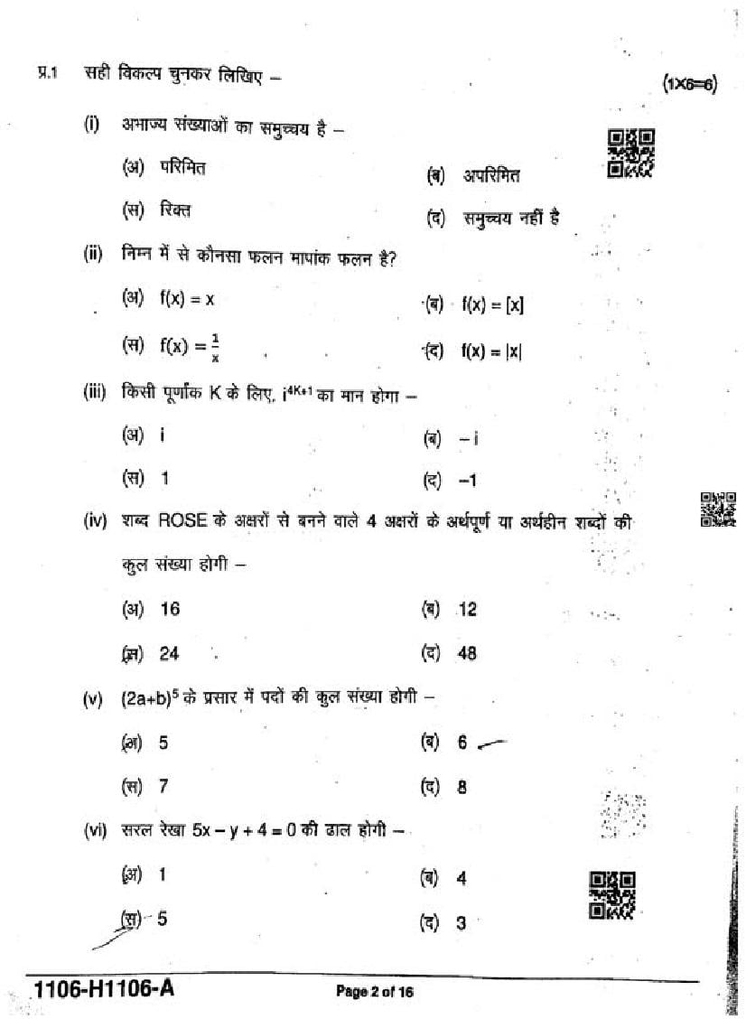 The MP Board Question Paper of class 11 Ardhvaarshik Exam for Mathematics subject is as follows.