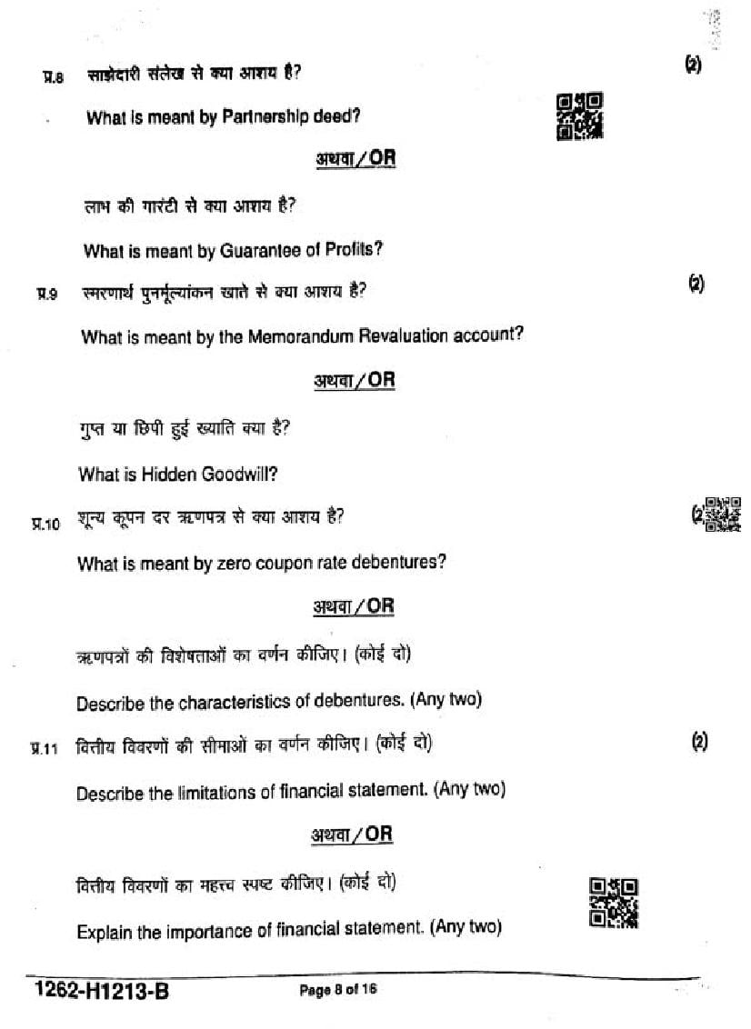 The MP Board Question Paper of class 12 Ardhvaarshik Exam for Accountancy subject is as follows.