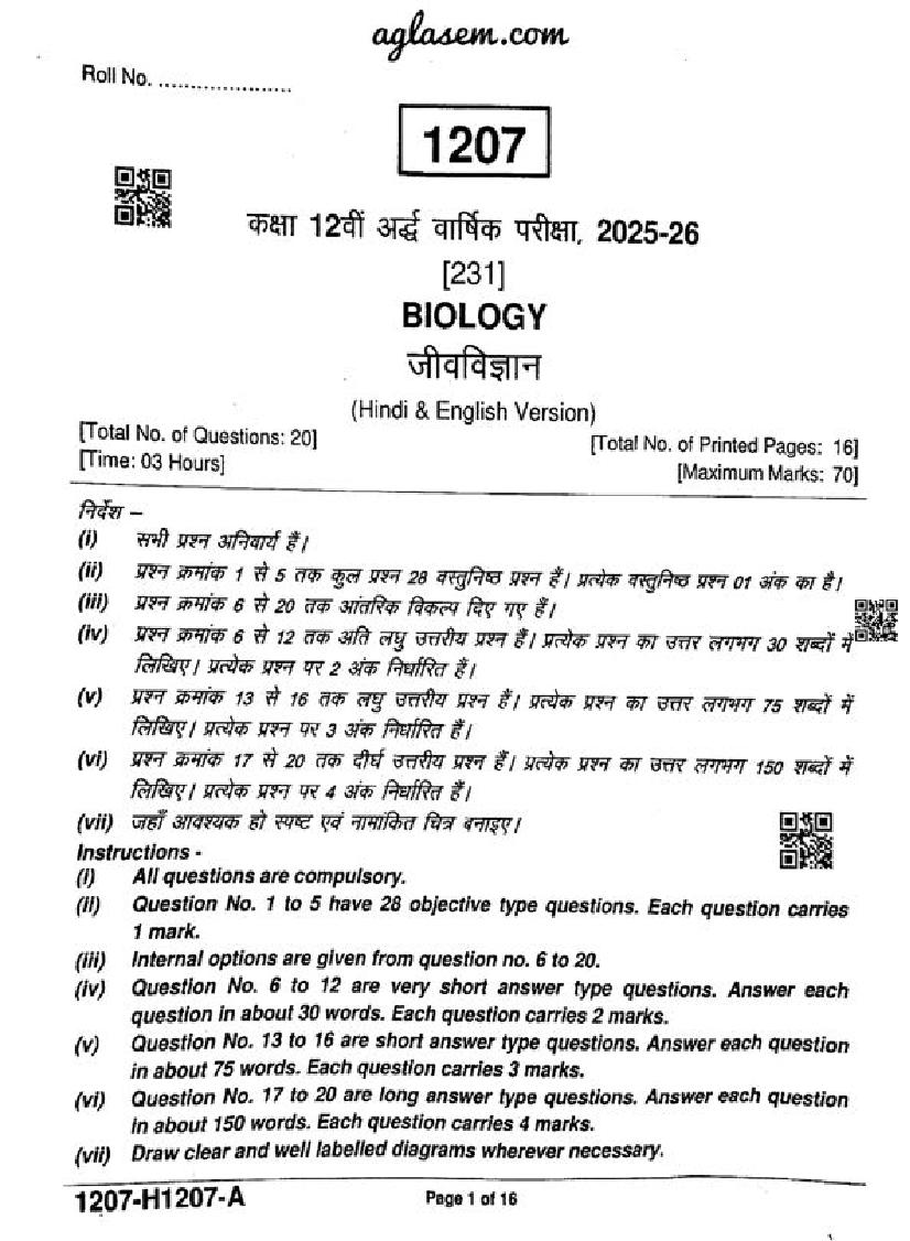 After solving the ardhvaarshik pariksha paper of Biology, you can download the half-yearly exam question papers for all subjects of class 12.
