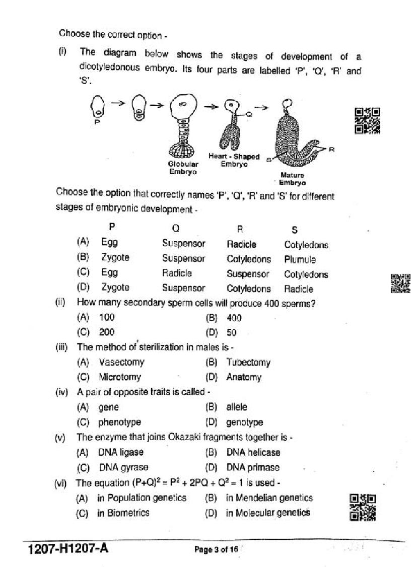 It is a good idea to download the class 12 Biology question paper from aglasem, using above link. However if you want to read all the questions in 12th standard ardhvaarshik pariksha for Biology, then you can also view the complete Biology question paper here itself. The entire contents of the ardhvaarshik pariksha question paper for class 12 Biology are as follows.