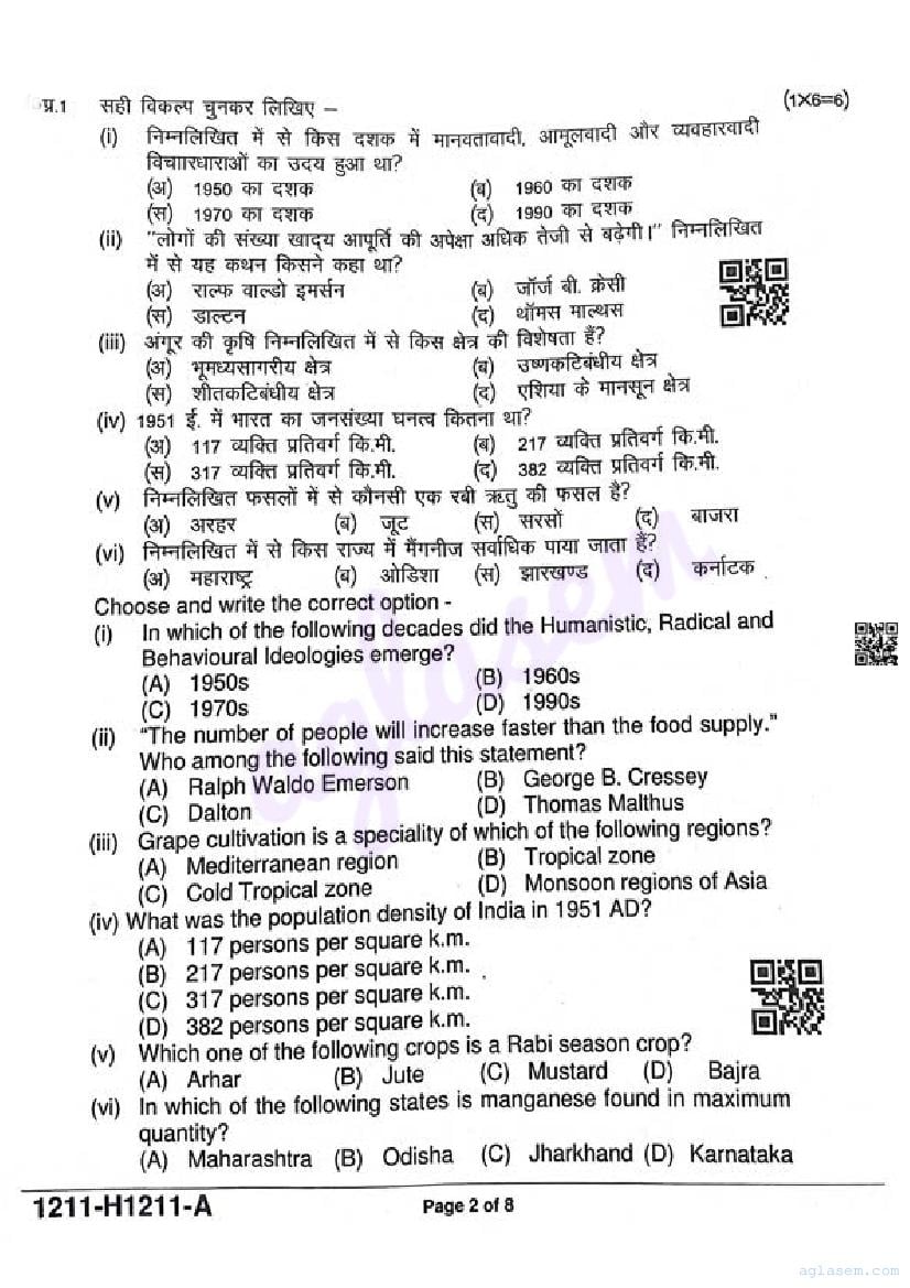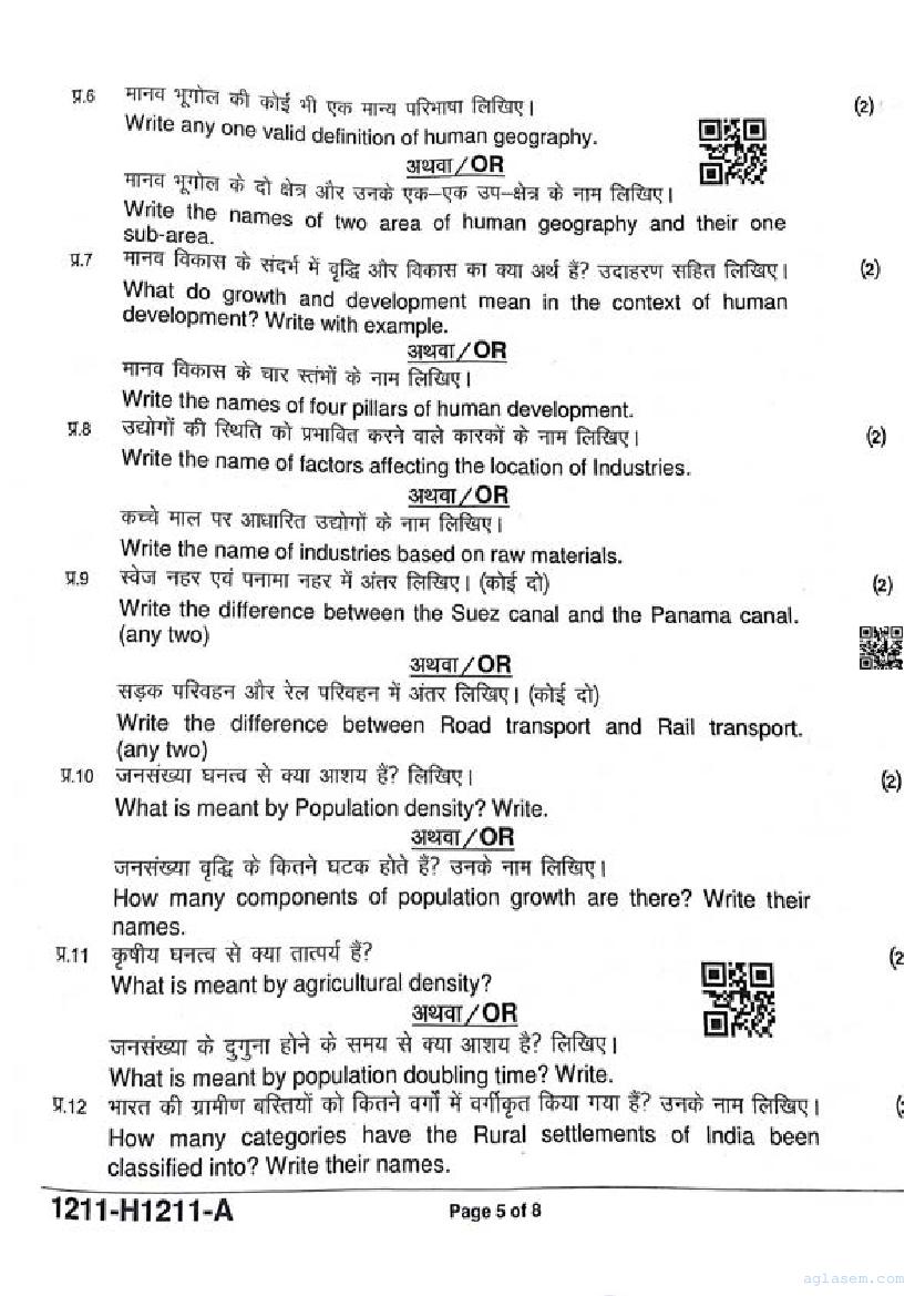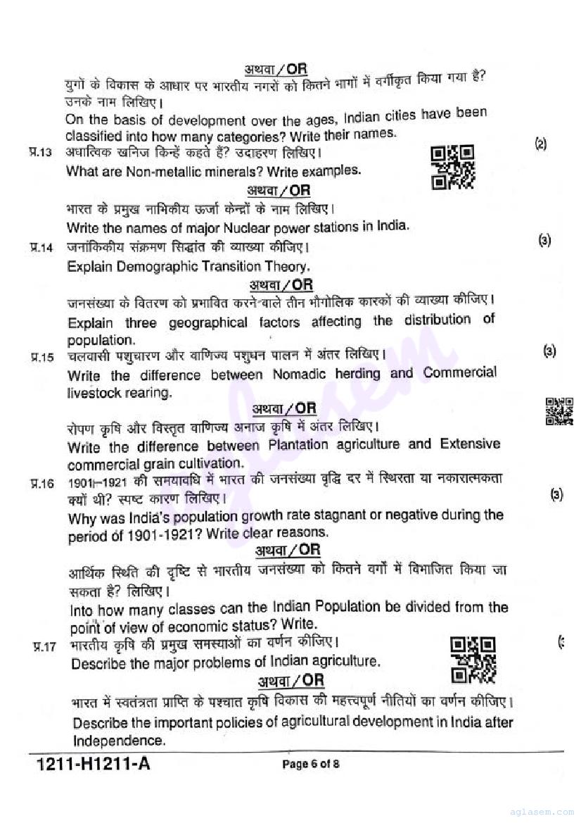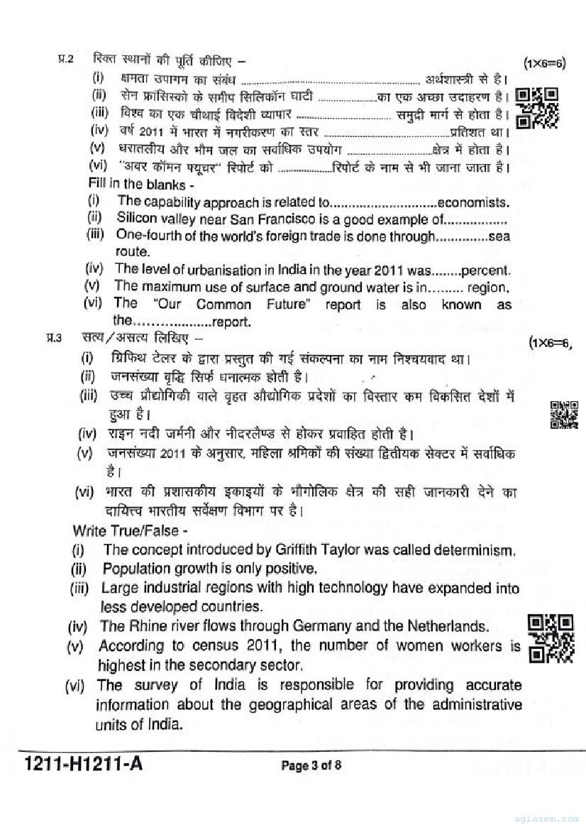 It is a good idea to download the class 12 Geography question paper from aglasem, using above link. However if you want to read all the questions in 12th standard ardhvaarshik pariksha for Geography, then you can also view the complete Geography question paper here itself. The entire contents of the ardhvaarshik pariksha question paper for class 12 Geography are as follows.