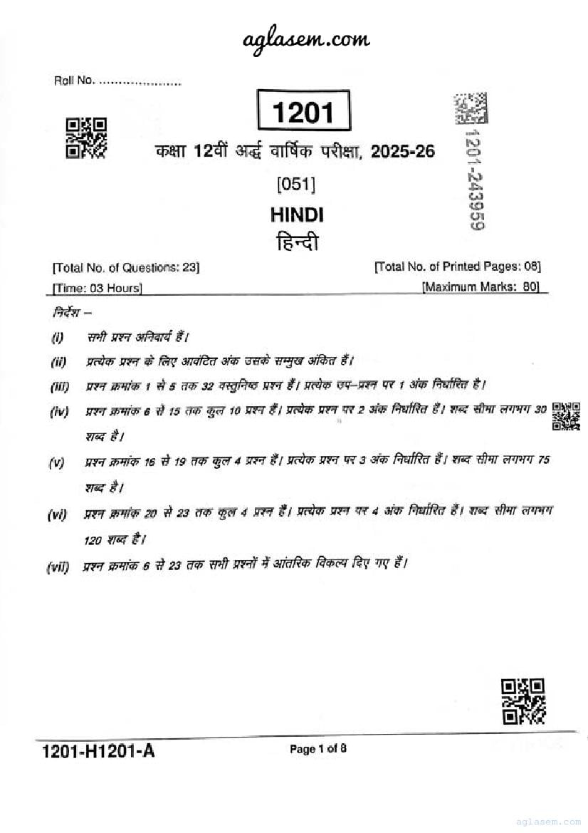 After solving the ardhvaarshik pariksha paper of Hindi, you can download the half-yearly exam question papers for all subjects of class 12.